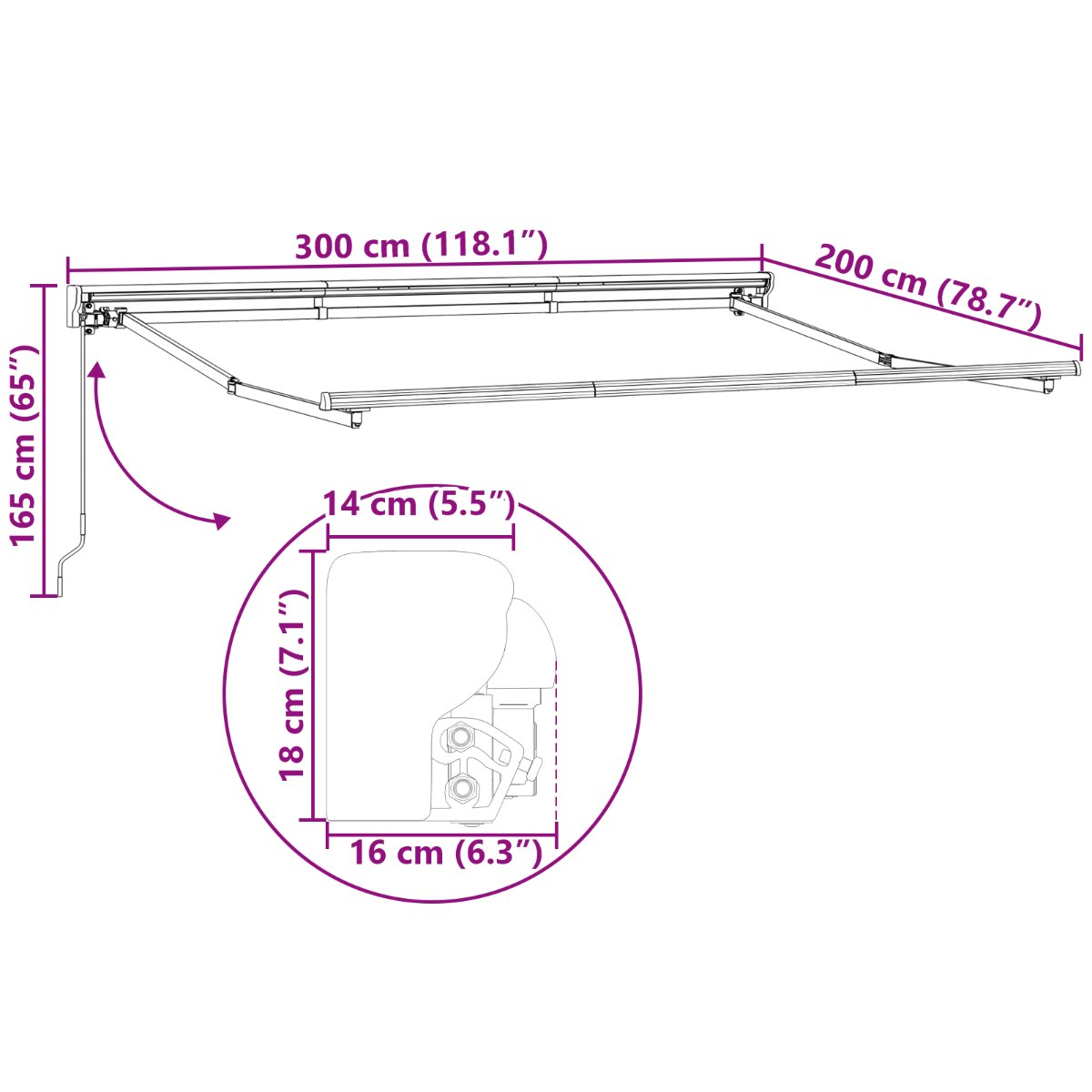 • Robustný materiál: Vyrobené z kvalitného, UV a vodeodolného hliníka a polyesteru, táto markíza vás chráni pred vonkajšími živlami a zároveň je odolná.