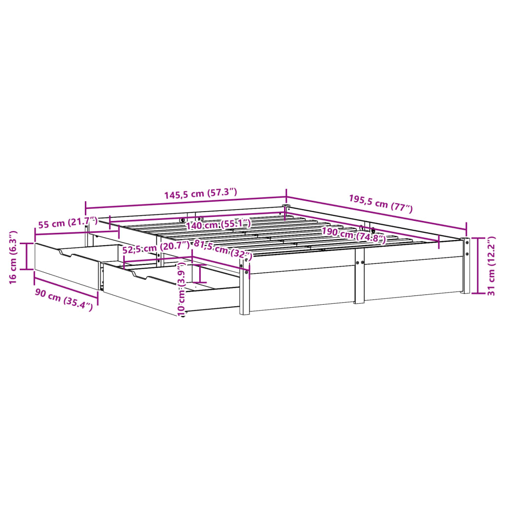 vidaXL Posteľ bez matraca biela 140x190 cm masívna borovica
