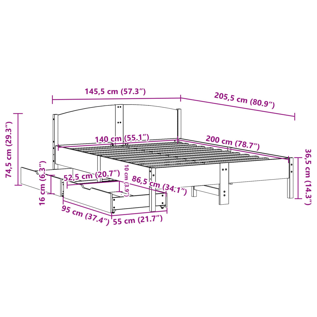vidaXL Posteľ bez matraca biela 140×200 cm masívna borovica