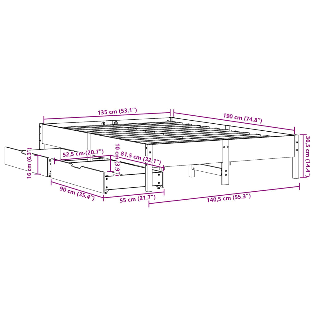 vidaXL Posteľ bez matraca biely 135x190 cm masívna borovica