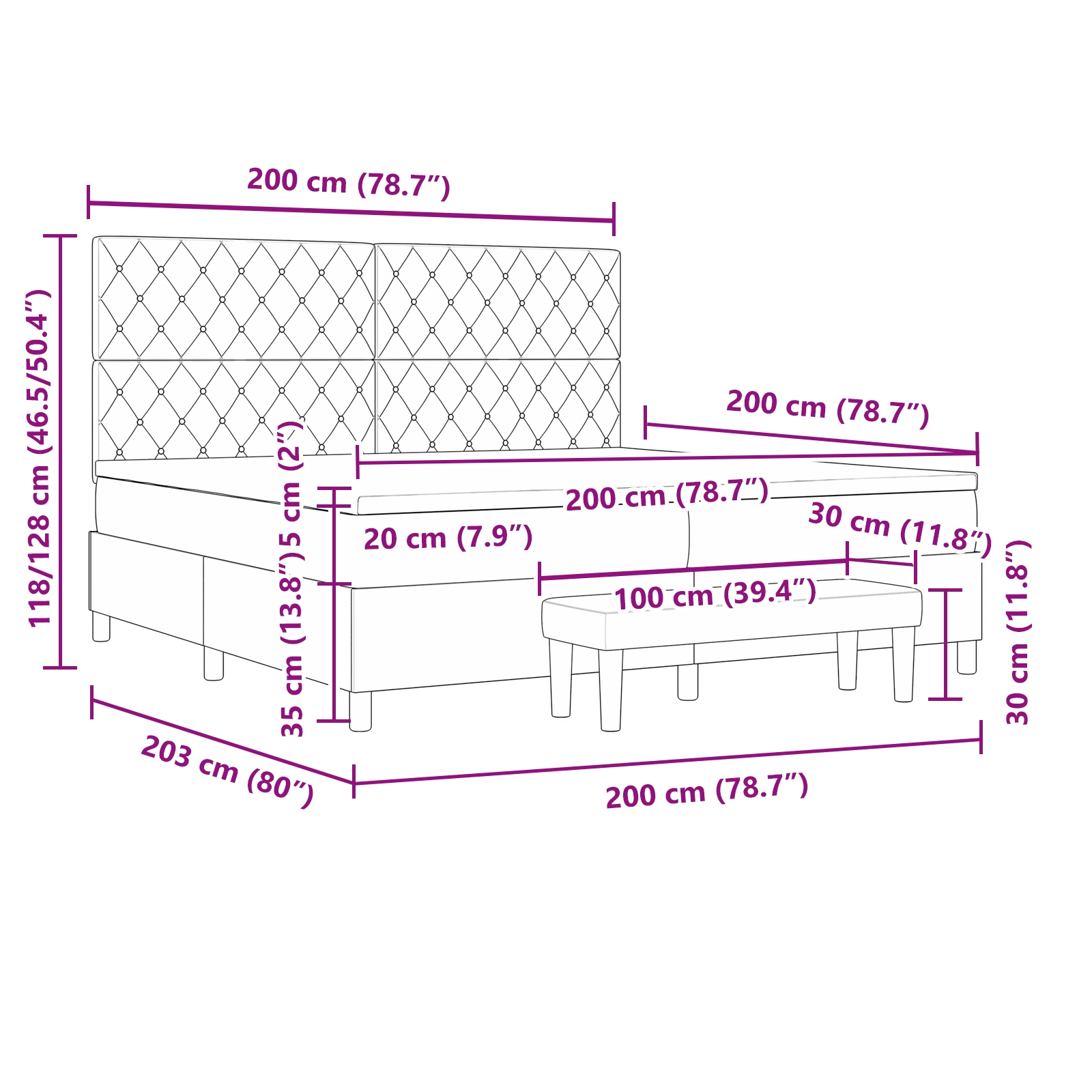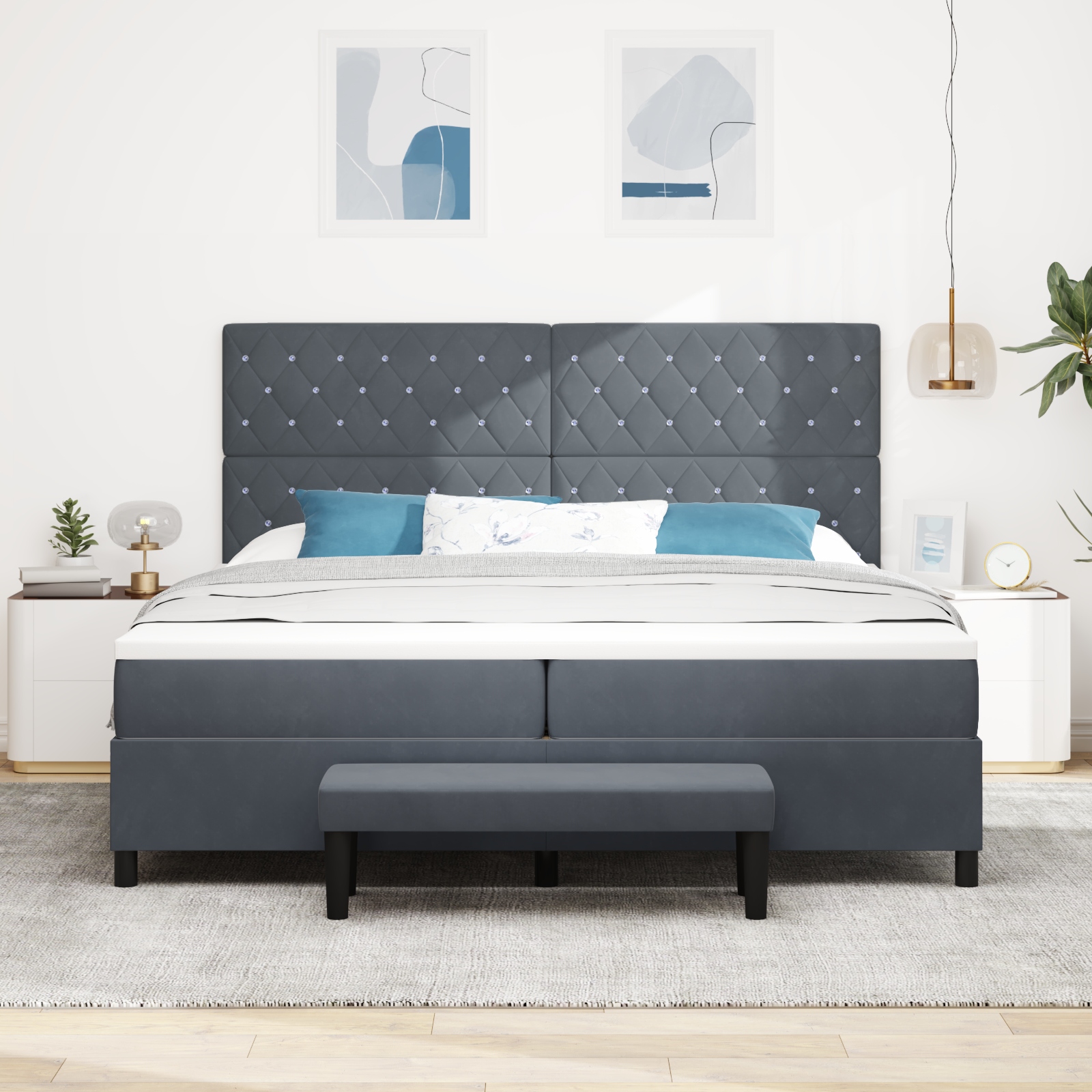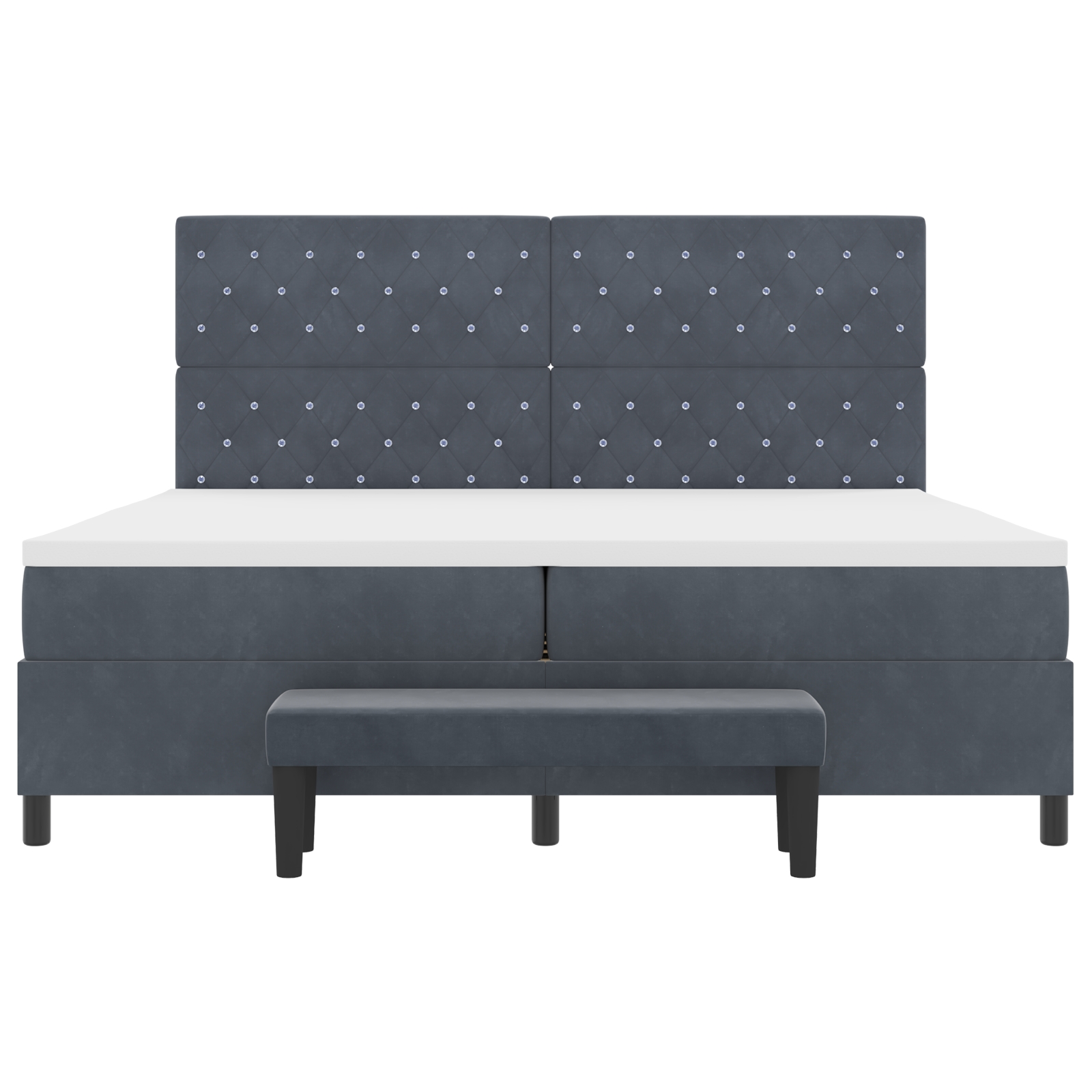 vidaXL Posteľ s boxovým spodkom a matracom & lavicou tmavošedá 200×200 cm zamat