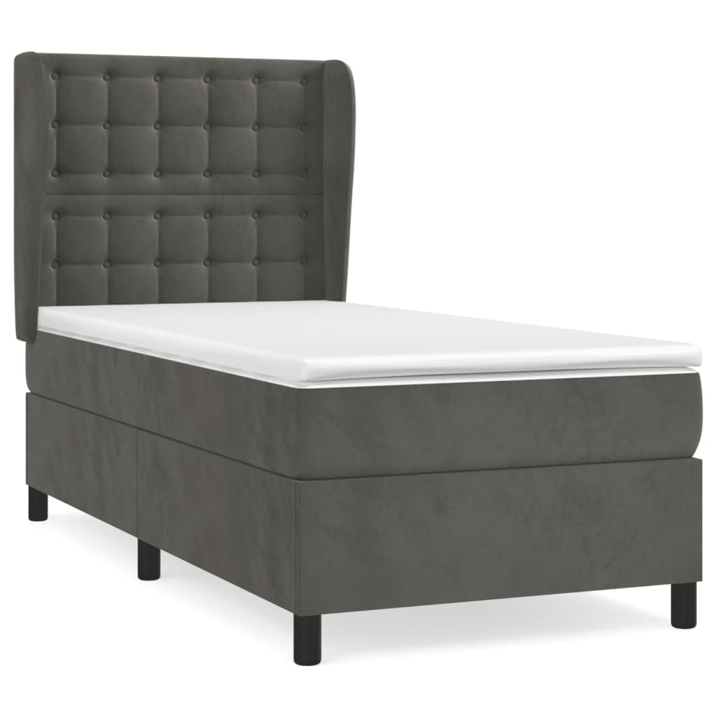vidaXL Posteľný rám boxspring s matracom tmavosivý 90x200 cm zamat