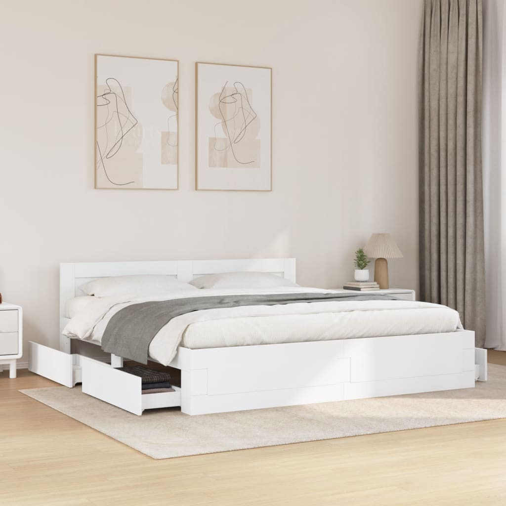 vidaXL Posteľný rám s čelom biely 180x200 cm kompozitné drevo