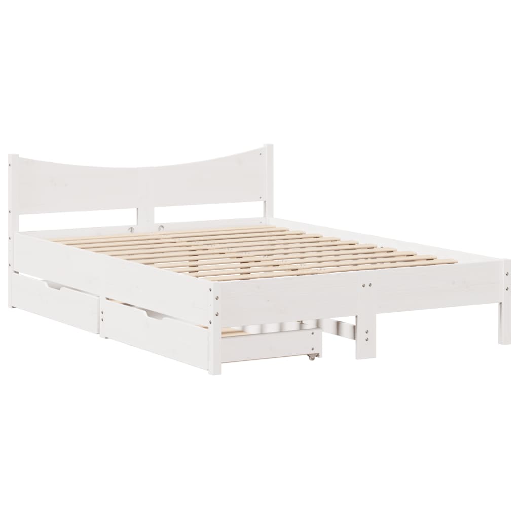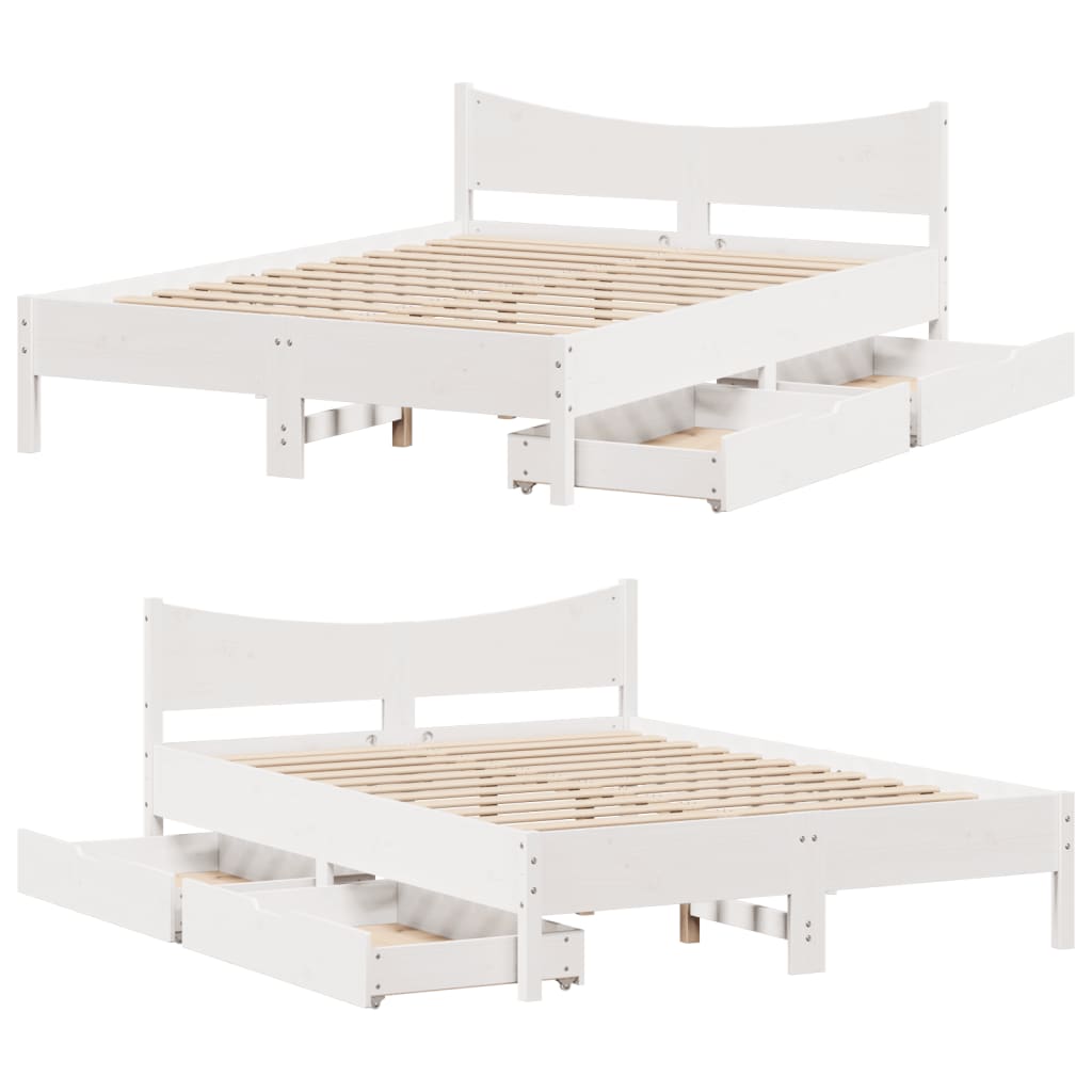 vidaXL Posteľný rám so zásuvkami biely 160x200 cm borovicový masív