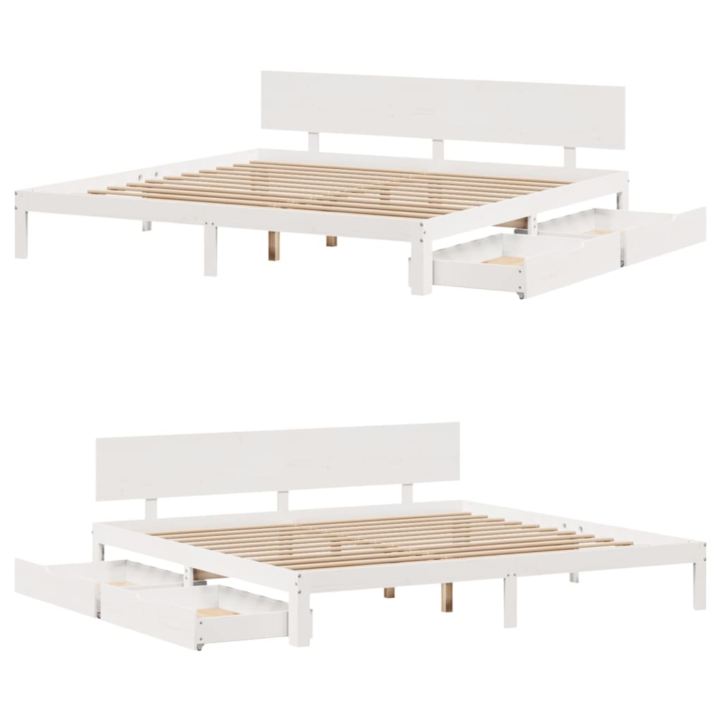 vidaXL Posteľný rám so zásuvkami biely 200x200 cm borovicový masív