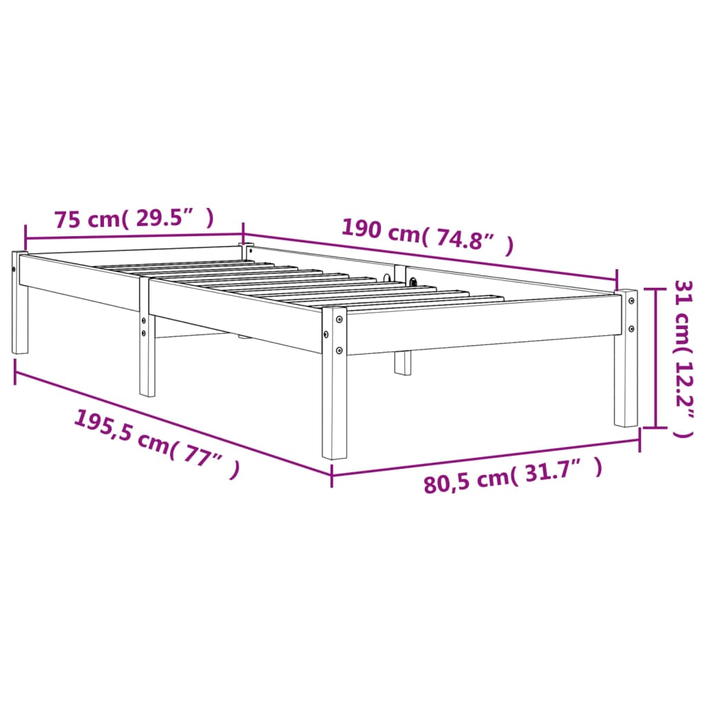 vidaXL Posteľný rám voskovo hnedý 75x190 cm masívna borovica
