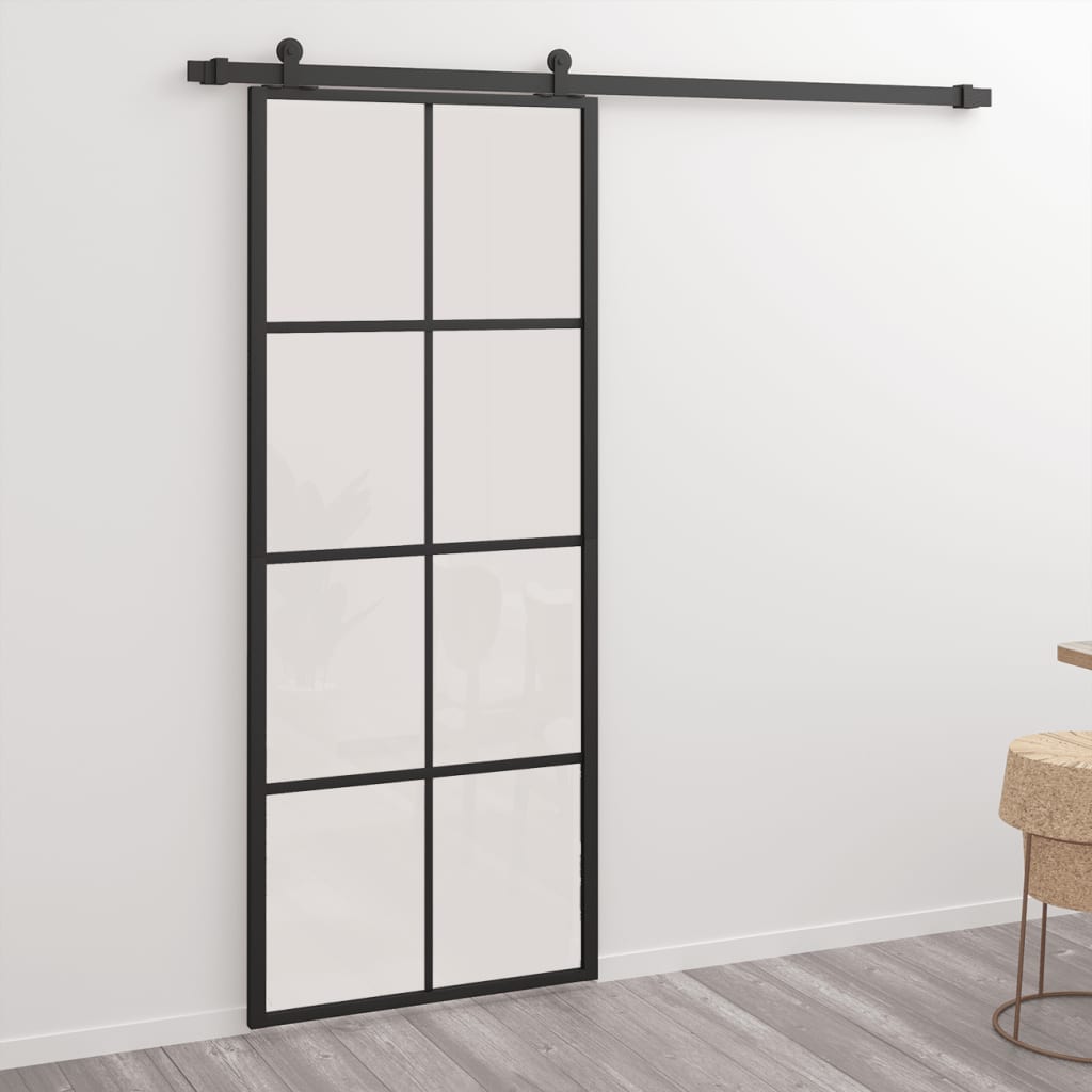 vidaXL Posuvné dvere hliník a sklo ESG 76×205 cm čierne