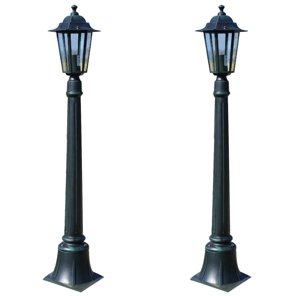 Táto sada 2 tmavozelených záhradných lámp je vyrobená z hliníka a číreho skla. Je určená pre žiarovky s maximálnym výkonom 60 wattov.