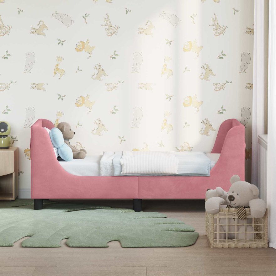 vidaXL Rám detskej postele s čelom Ružová 70 x 140 cm Zamat vidaXL Rám detskej postele s čelom Ružová 70 x 140 cm Zamat