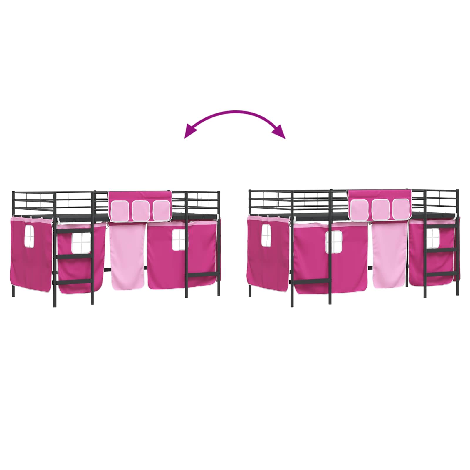 vidaXL Rám poschodovej postele pre deti s závesmi Čierna a Ružová vidaXL Rám poschodovej postele pre deti s závesmi Čierna a Ružová