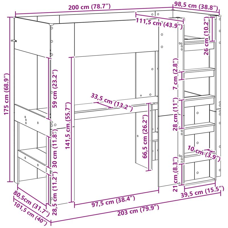 • Zahrnuté komponenty: S funkčným stolom a policami, tento rám poschodovej postele je navrhnutý pre prax štúdia alebo práce. Stôl poje laptop, knihy a iné študijné materiály, a police ponúkajú ďalšie úložné možnosti, takže izba je uprataná a organizovaná.