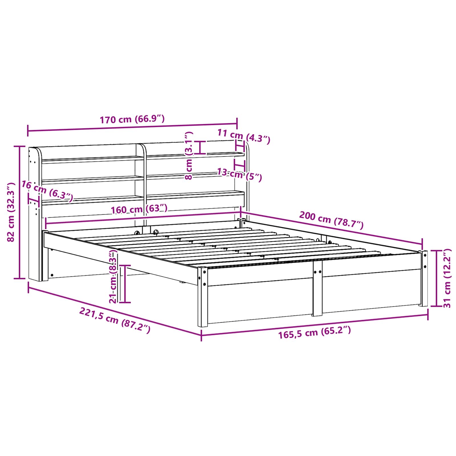 • Funkčné čelo s policami: Čelo z masívneho borovicového dreva má integrované police, ktoré poskytujú extra úložný priestor. Ponúkajú pohodlné miesto na veci, ako sú knihy alebo elektronika, čím šetria priestor v spálni.