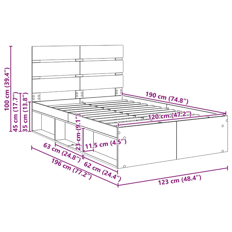 vidaXL Rám postele Čierna 120 x 190 cm Masívne borovicové drevo