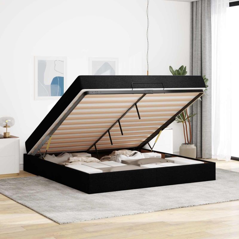 vidaXL Rám postele Iný s úložiskom Čierna 180 x 200 cm látka vidaXL Rám postele Iný s úložiskom Čierna 180 x 200 cm látka