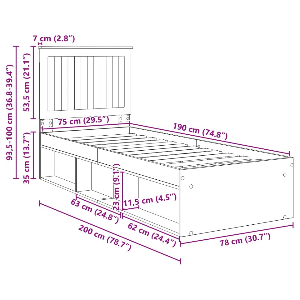 vidaXL Rám postele s čelnou doskou Remeselnícky dub 75 x 190 cm vidaXL Rám postele s čelnou doskou Remeselnícky dub 75 x 190 cm