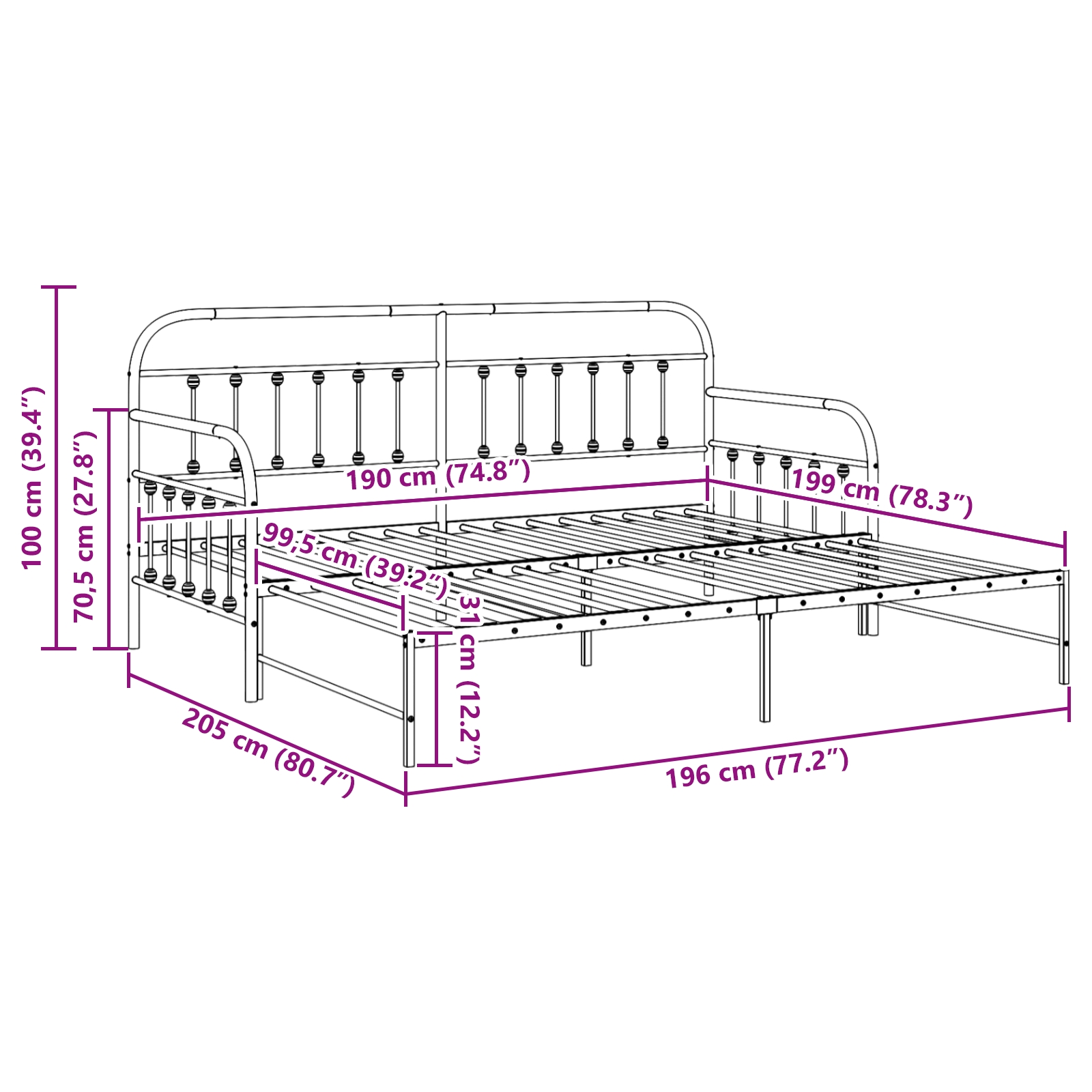 vidaXL Rám postele s prístelkou Čierny 100x190 cm Oceľ