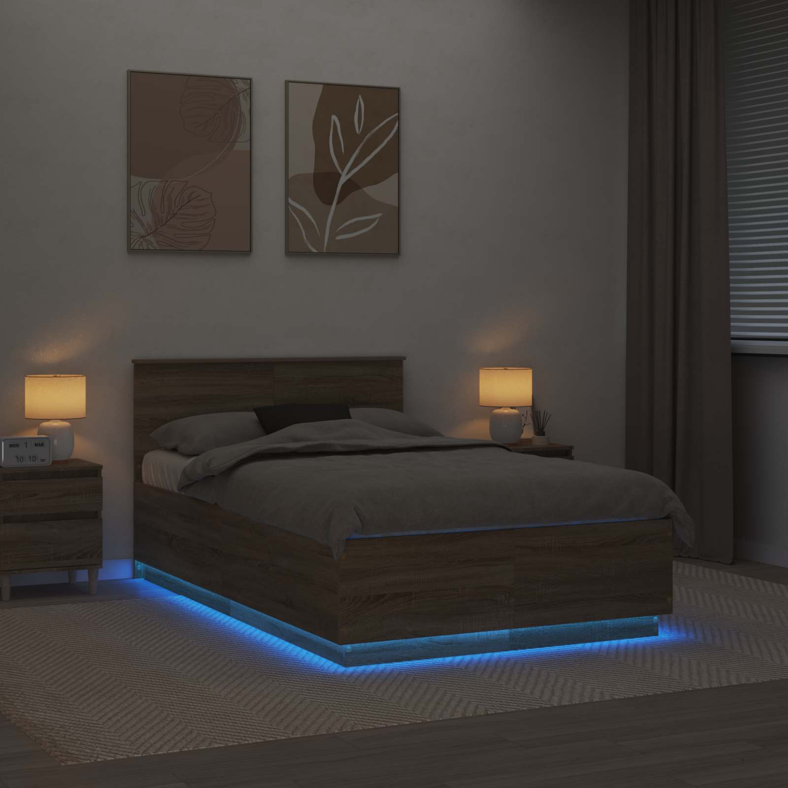 Tento moderný rám postele premení vašu spálňu svojim elegantným a súčasným dizajnom. Rám z kompozitného dreva má minimalistický vzhľad, ktorý skvele pasuje do každého moderného prostredia. Navrhnutý na zlepšenie vášho spánku, posteľ má nastaviteľné čelo a LED osvetlenie na vytvorenie príjemnej atmosféry na relaxáciu.