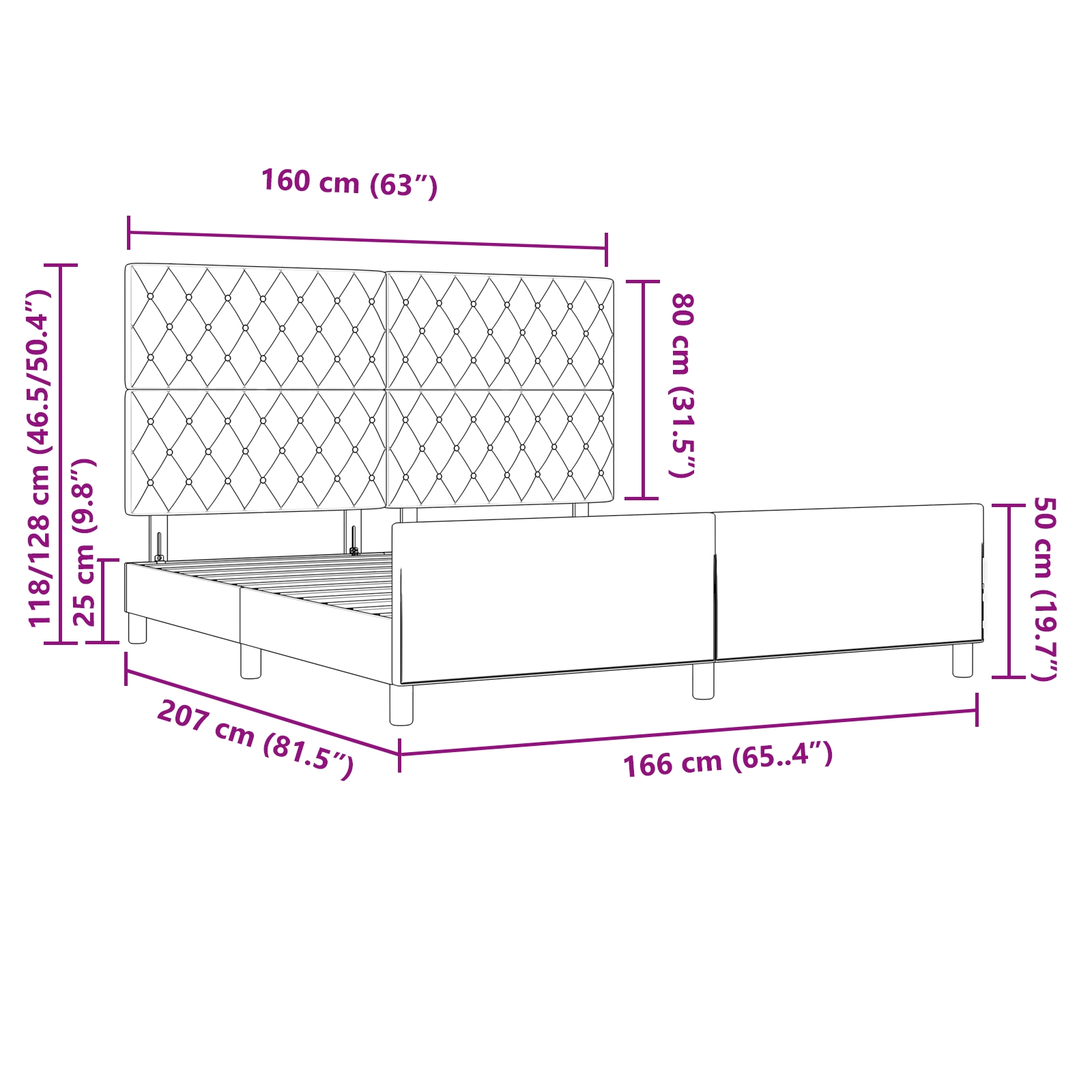 vidaXL Rám postele Svetlosivá 160x200 cm Zamat