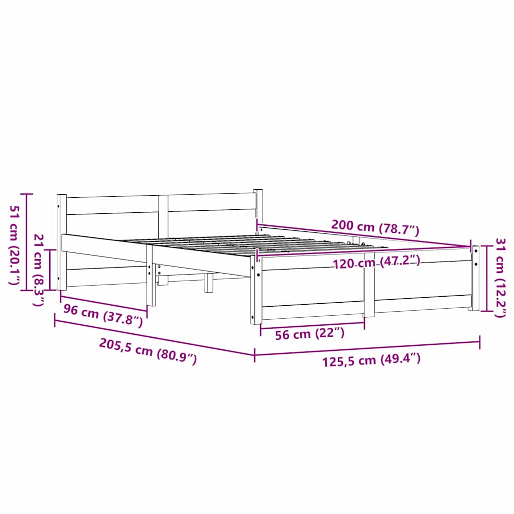vidaXL Rám postele Voskovo hnedá 120 x 200 cm Borovicový masív vidaXL Rám postele Voskovo hnedá 120 x 200 cm Borovicový masív
