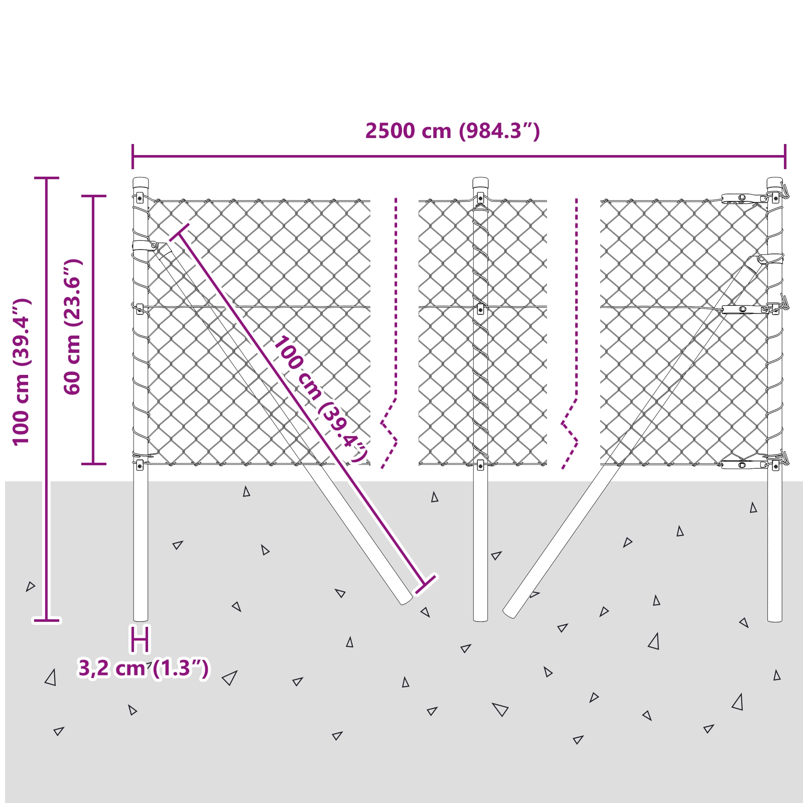 vidaXL Reťazový plot s 13 stĺpmi 0.6×25 m Pozinkovaná oceľ