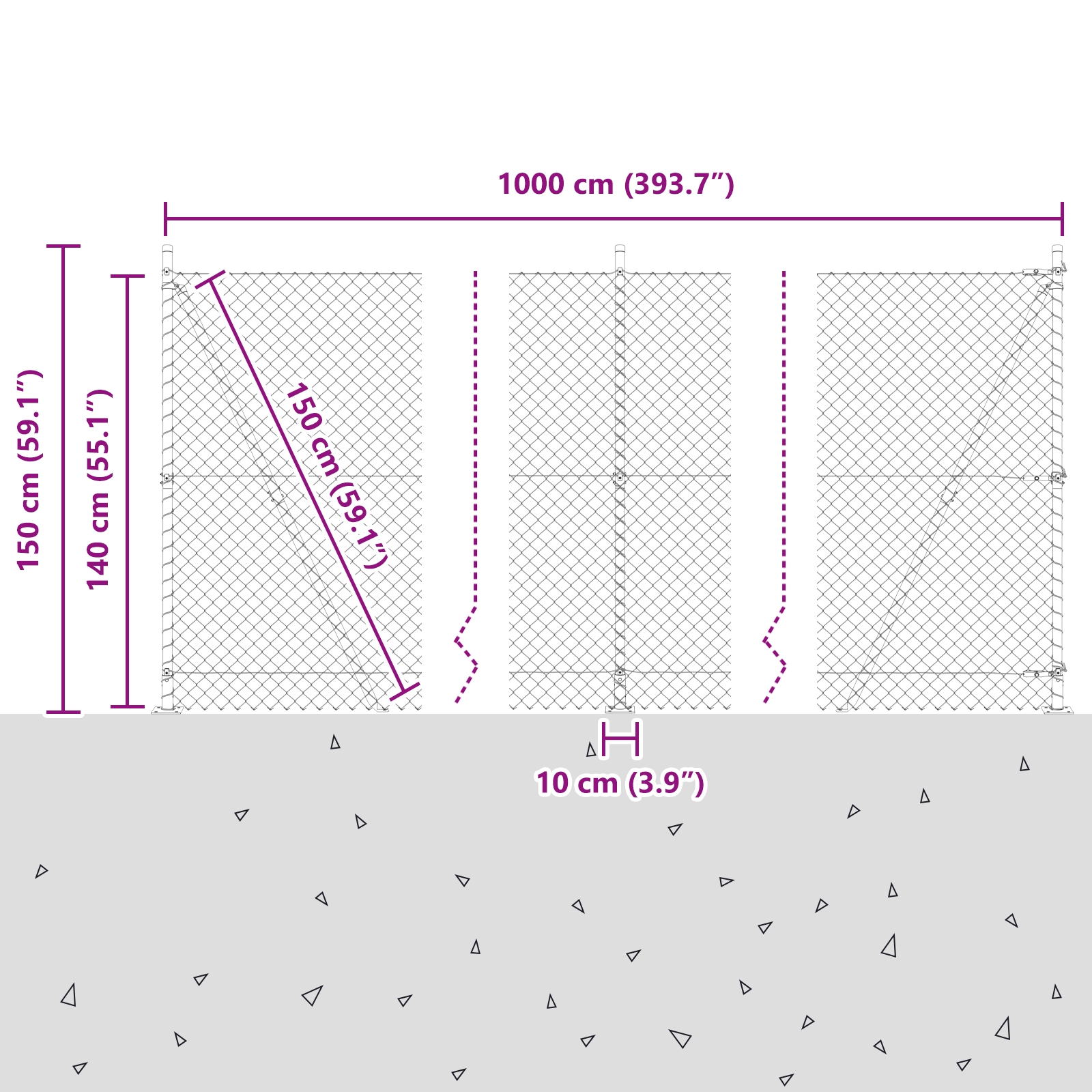 vidaXL Reťazový plot s 7 pripevňovacími stĺpmi 1.4x10 m Pozinkovaná oceľ