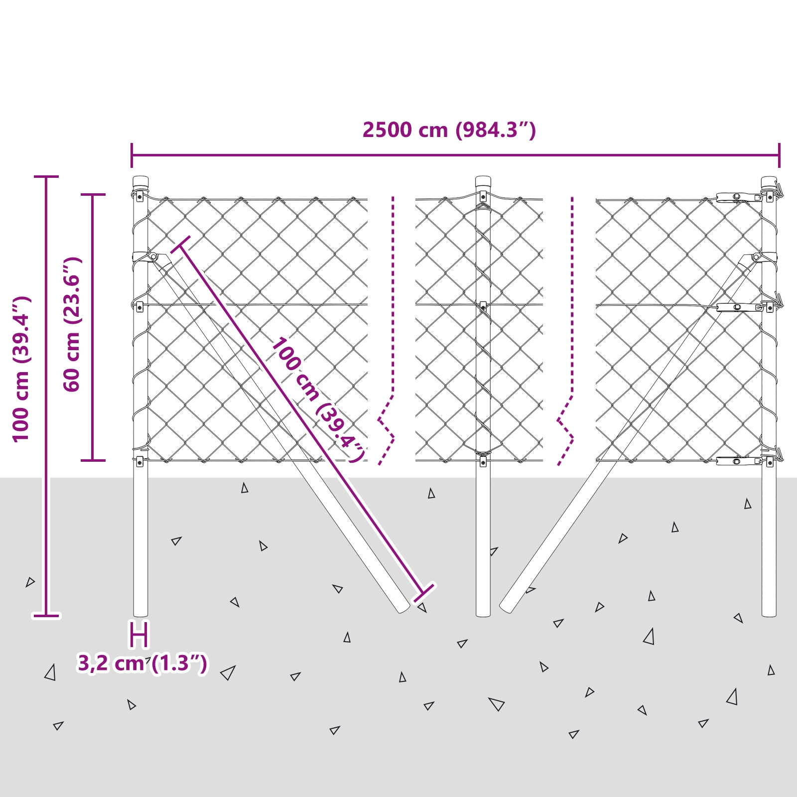 vidaXL Retiazkový plot s 13 stĺpmi 0.6x25 m zinkovaná oceľ