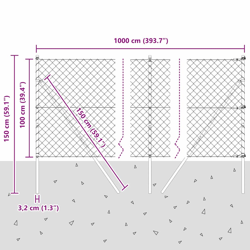 vidaXL Retiazkový plot so stĺpikmi Sivá 1 x 10 m