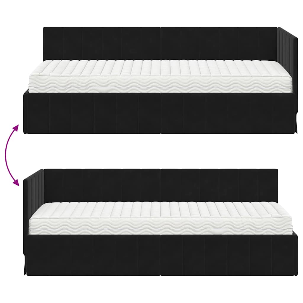 vidaXL Rohový rám postele s matracmi Čierna 80 x 200 cm Zamat vidaXL Rohový rám postele s matracmi Čierna 80 x 200 cm Zamat