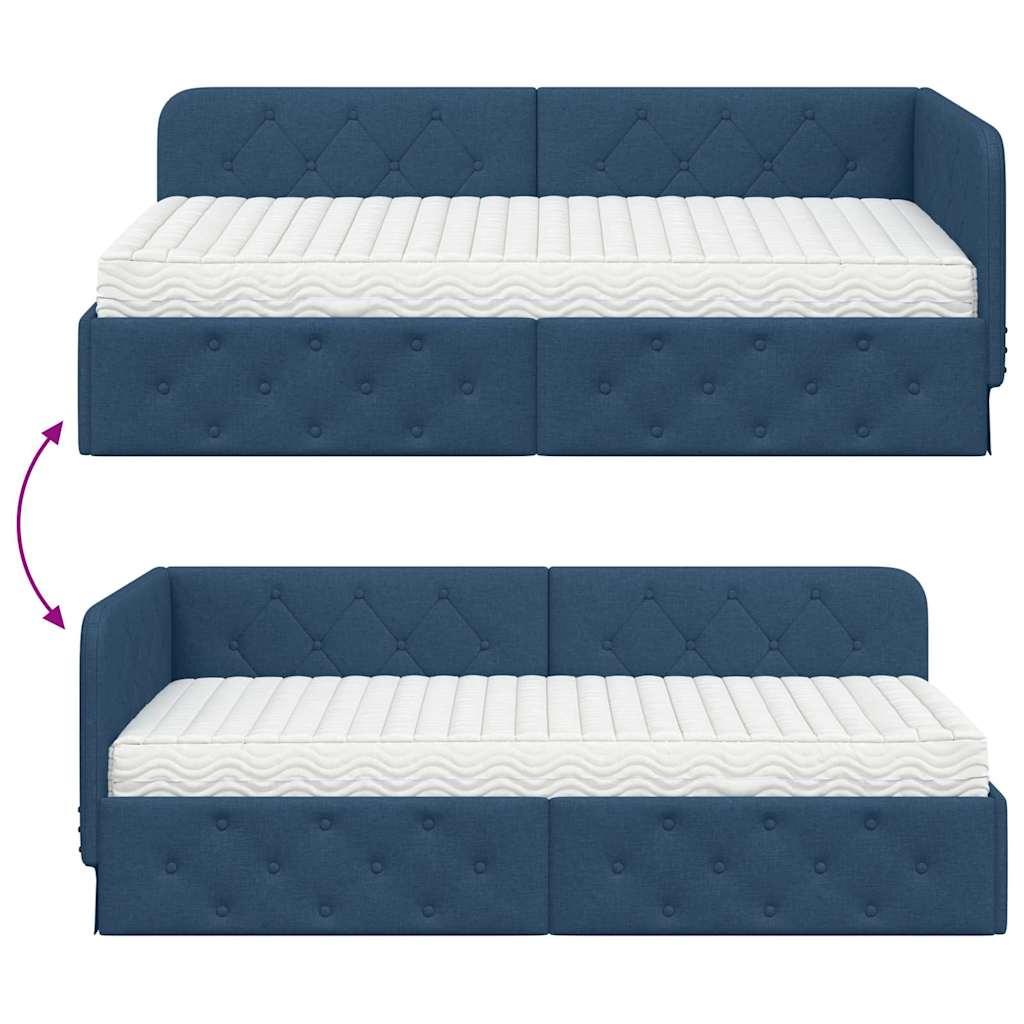 vidaXL Rohový rám postele s matracmi Modrá 90 x 190 cm látka vidaXL Rohový rám postele s matracmi Modrá 90 x 190 cm látka