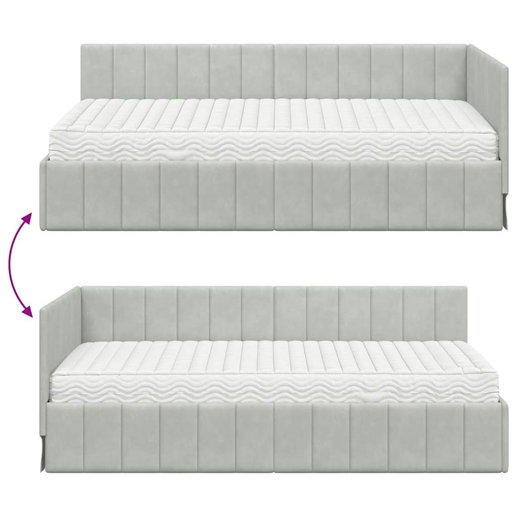 vidaXL Rohový rám postele s matracmi Svetlosivá 100 x 200 cm Zamat vidaXL Rohový rám postele s matracmi Svetlosivá 100 x 200 cm Zamat