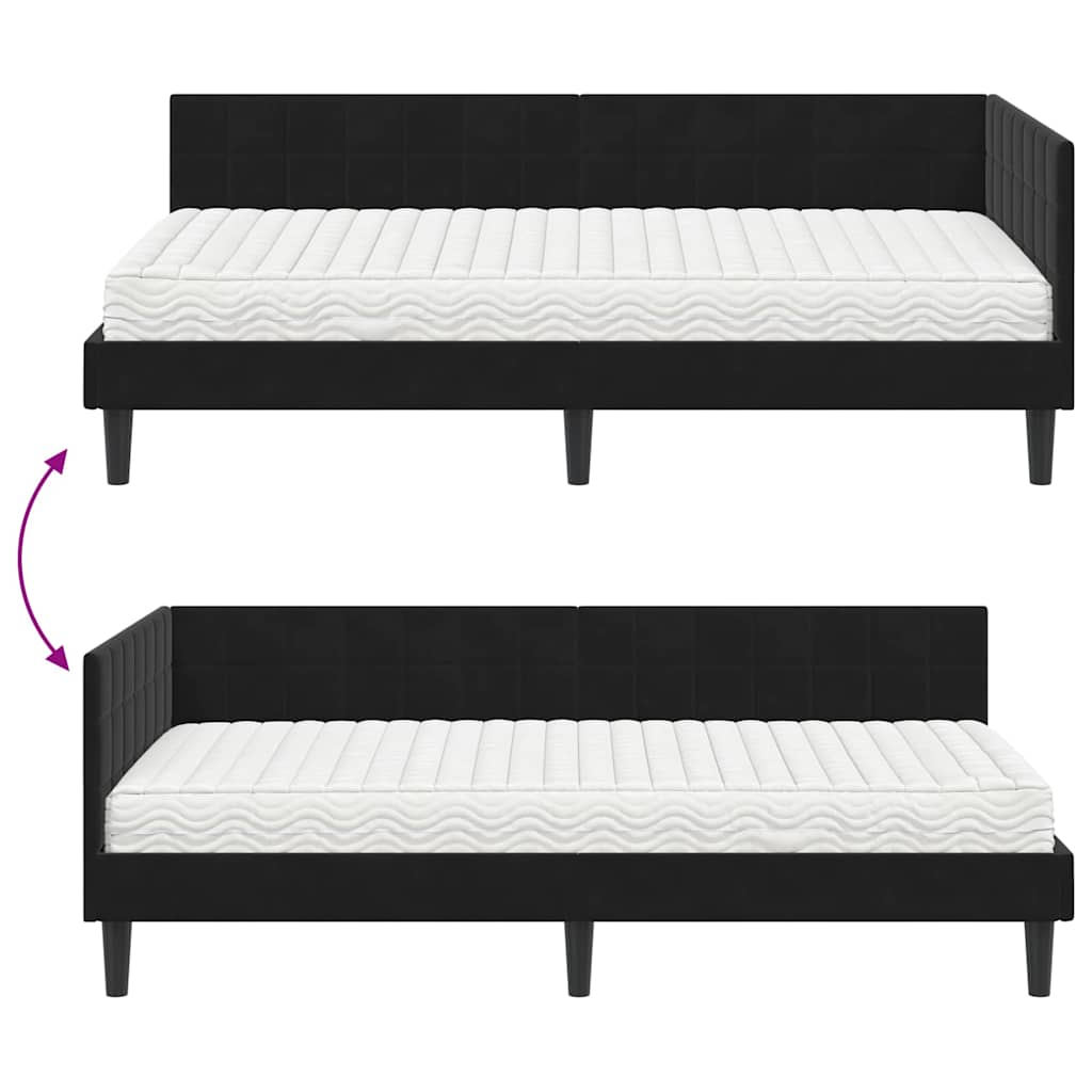 vidaXL Rohový rám postele s matracom 2 pcs Čierna Zamat