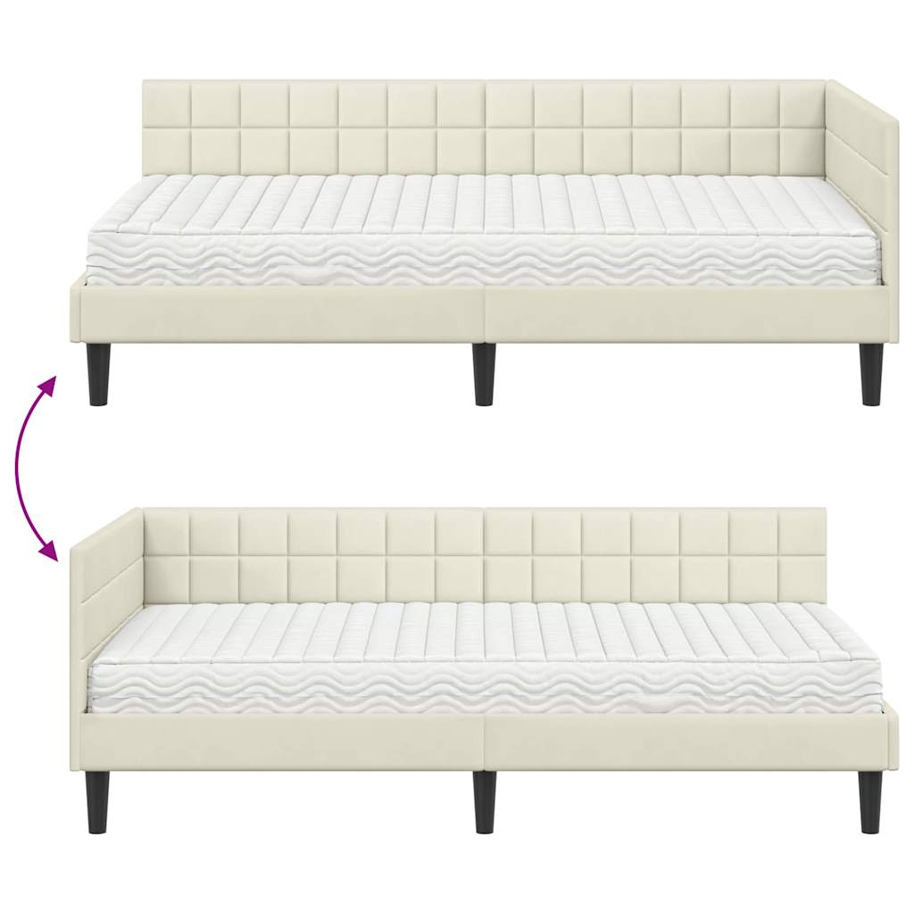 vidaXL Rohový rám postele s matracom 2 pcs Krémová Zamat