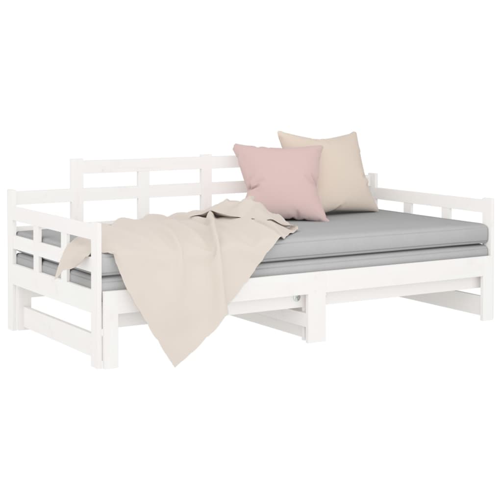 vidaXL Rozkladacia denná posteľ biela borovicový masív 2x(80x200) cm