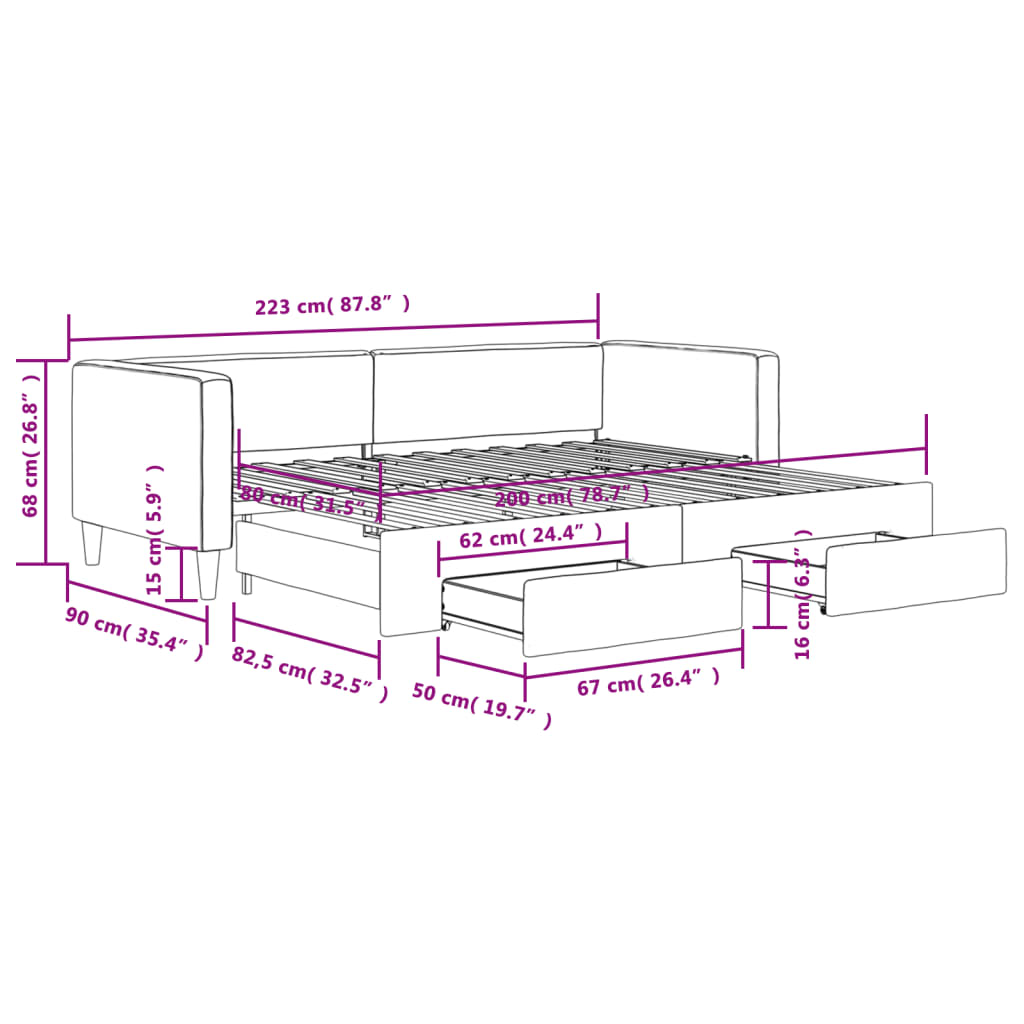 vidaXL Rozkladacia denná posteľ so zásuvkami čierna 80x200 cm látka