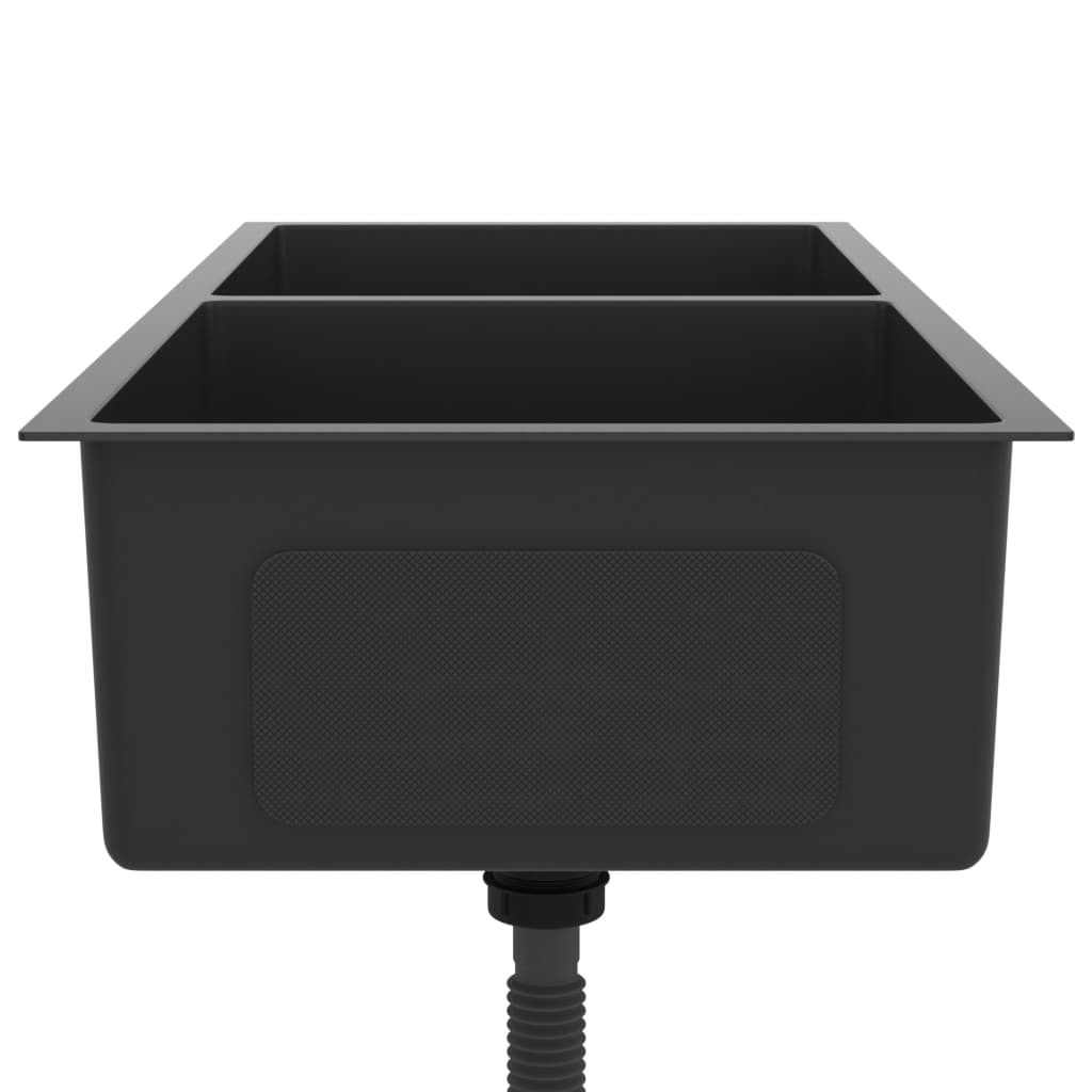 vidaXL Ručne vyrobený kuchynský drez, čierny, nehrdzavejúca oceľ