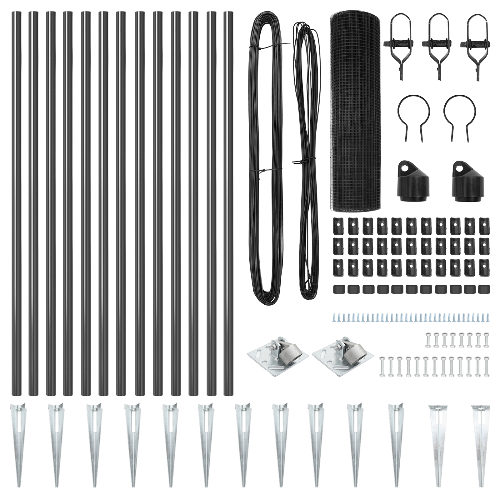 vidaXL Sada plotových stĺpov Sada 2 Sivá, čierna Oceľ, PVC 25 x 0.5 m