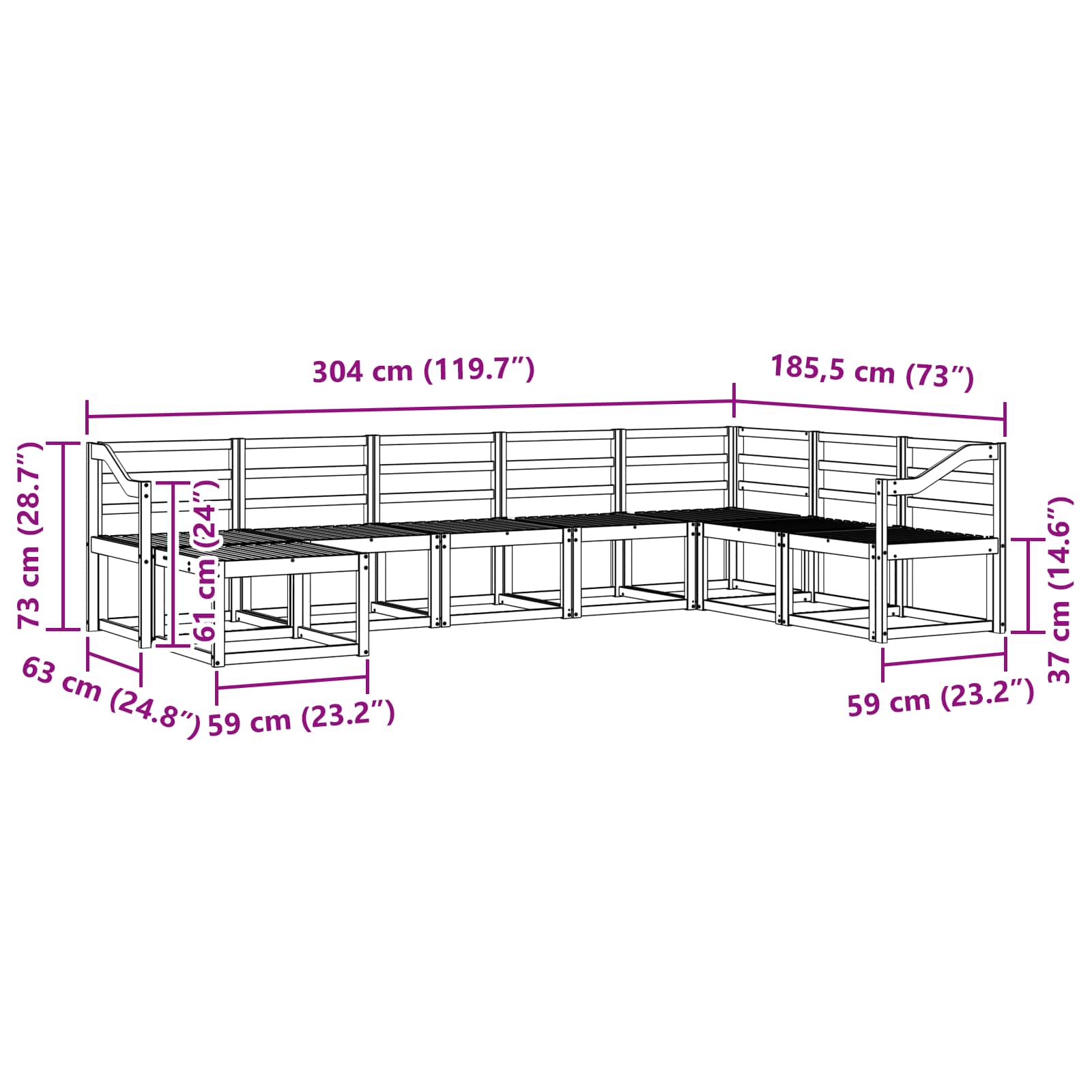 • 6 x Stredová pohovka: 59 x 63 x 73 cm (D x Š x V)