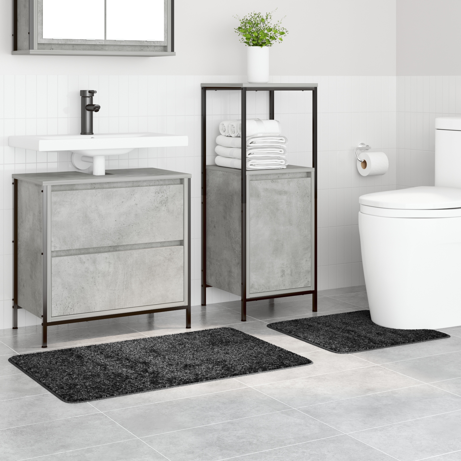 Táto tmavošedá mikrovláknová kúpeľňová predložka spája moderný štýl s pohodlím a praktickosťou. Jej elegantný vzhľad dodá vašej kúpeľni teplý a príjemný pocit.