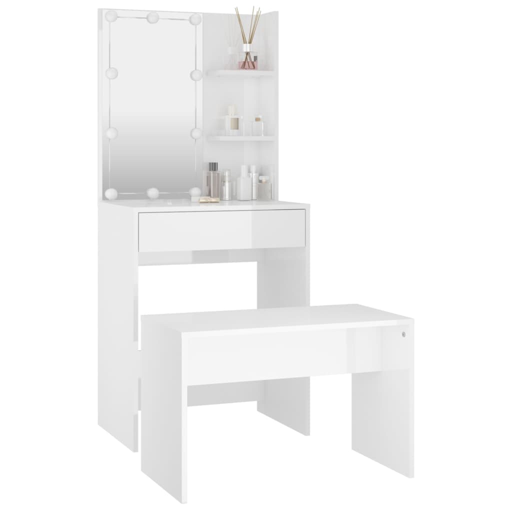 vidaXL Sada toaletného stolíka s LED lesklá biela spracované drevo