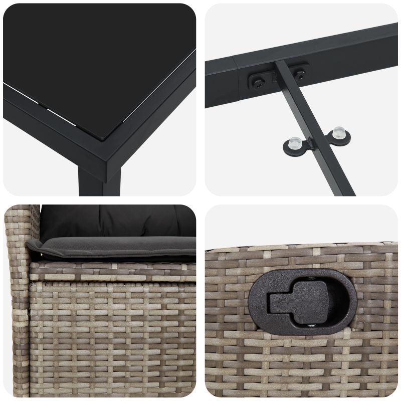 Tento moderný set polohovateľných záhradných kresiel ponúka pohodlie a elegantný vzhľad, ktorý oživí každý vonkajší priestor. Ideálne pre terasy, balkóny alebo záhrady, tieto štýlové kreslá kombinujú súčasný dizajn s praktickosťou.