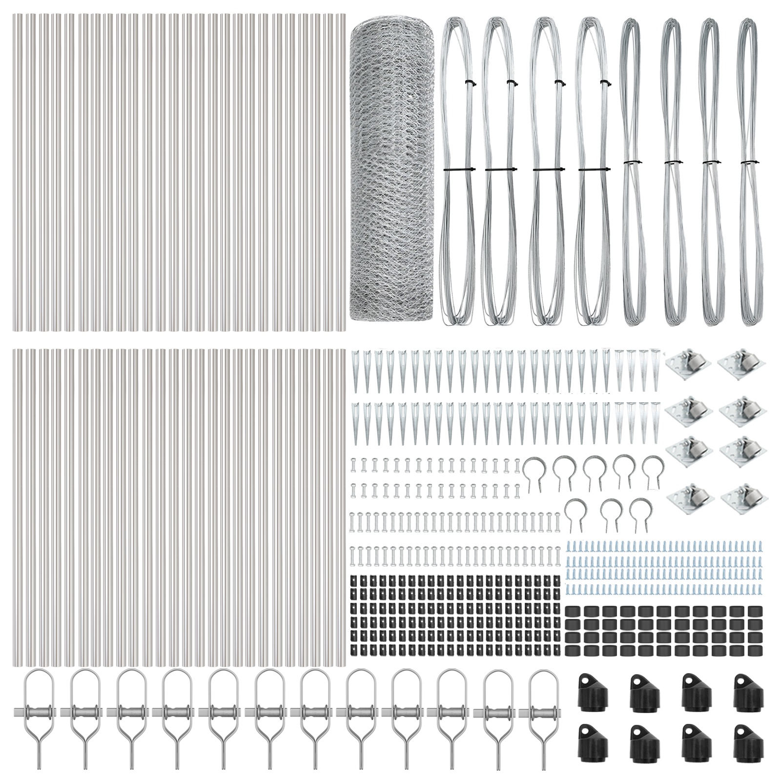 • Kompletná súprava: Prichádza so všetkým, čo potrebuješ – stĺpiky, pletivo, drôty, spony a špicaté kotvy na jednoduché zloženie.