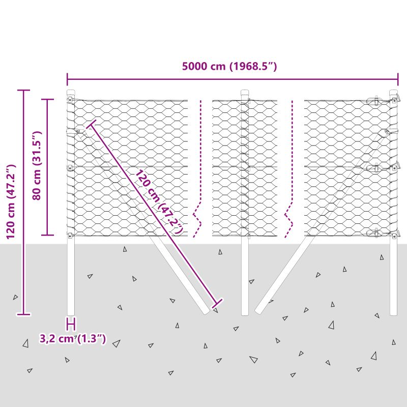 vidaXL Šesťuholníkový plot sivý 0,8×50 m oceľ