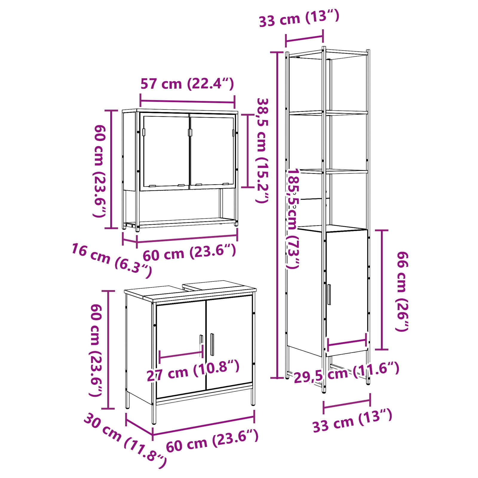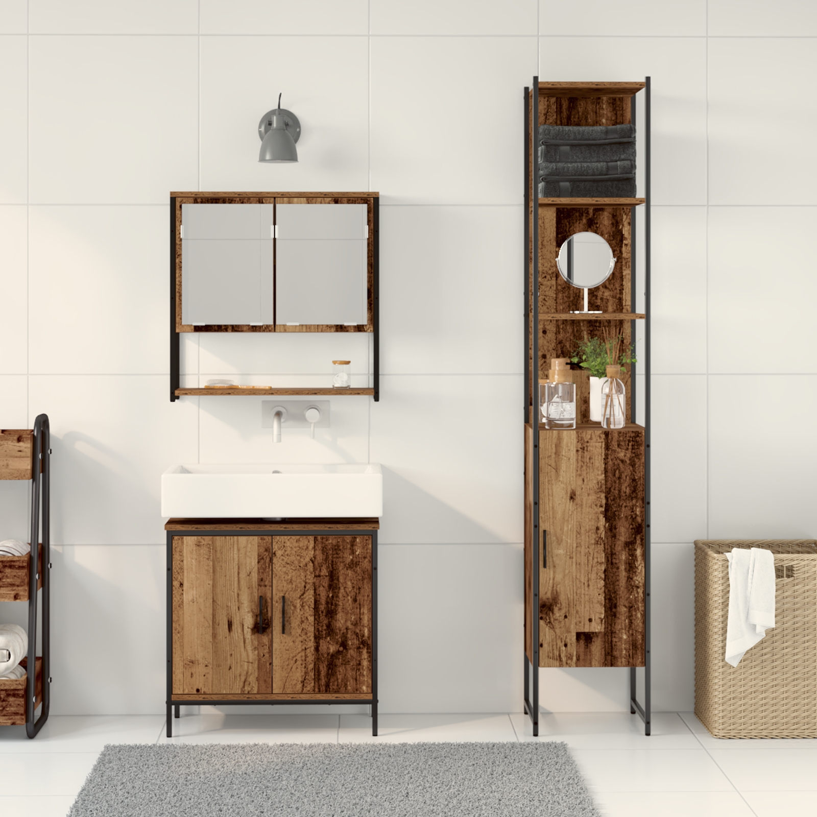 Tento 3-dielny set kúpeľňového nábytku spája moderný industriálny dizajn s praktickým úložiskom, čo z neho robí super voľbu na uskladnenie kúpeľňových vecí. Vyrobené z pevných recyklovaných dosiek, dodáva teplé tóny a praktické riešenia na udržanie vašich toaletných potrieb, uterákov a každodenných vecí usporiadané a ľahko prístupné.