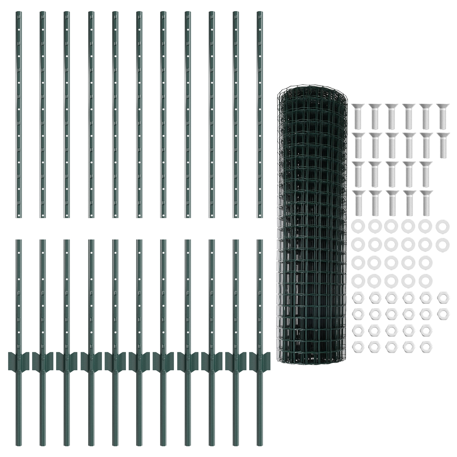 • Kompletný set: Každý balík obsahuje jeden rol pekného zeleného plotu a desať pevných stĺpikov, tak ste pripravení na kompletné oplotenie vášho priestoru.