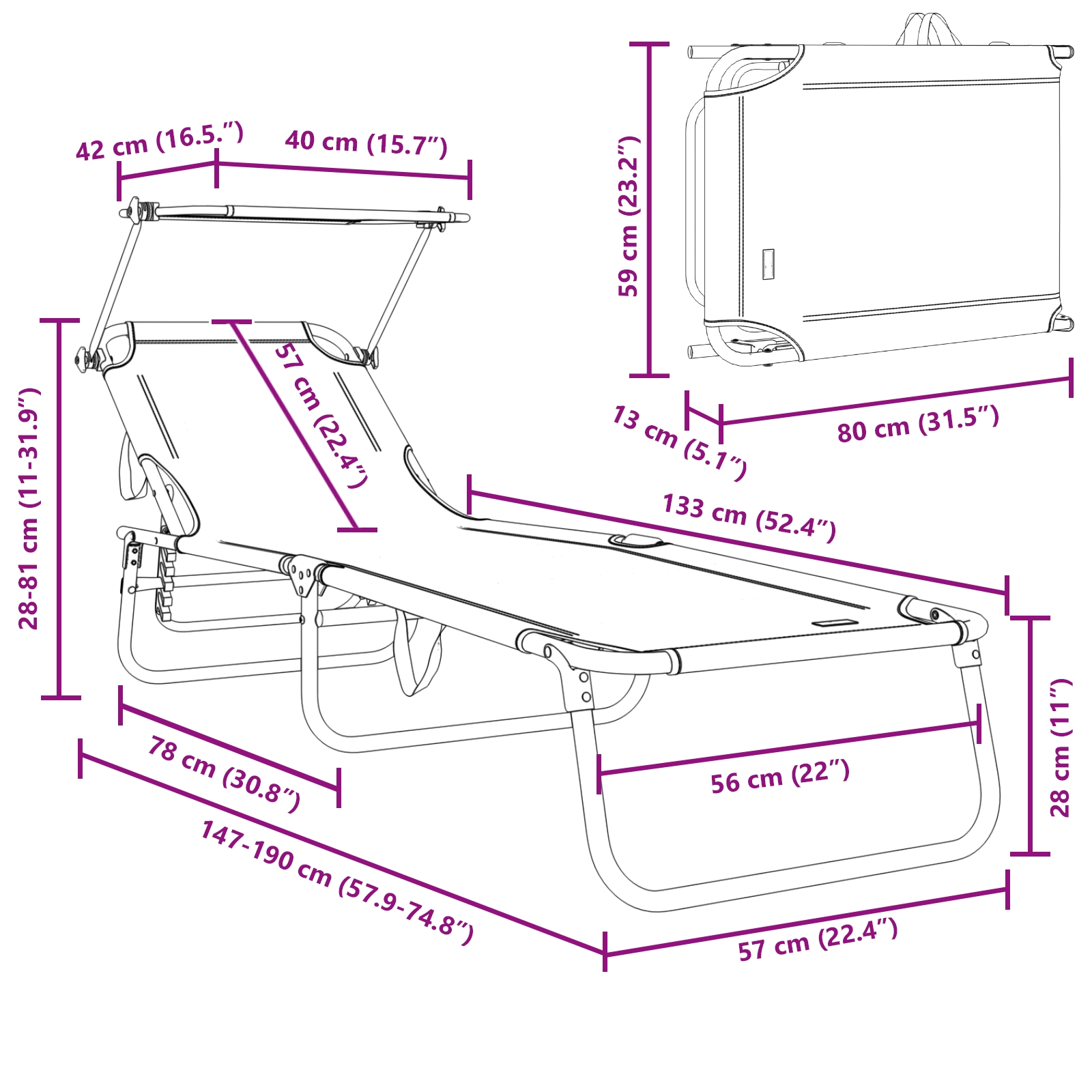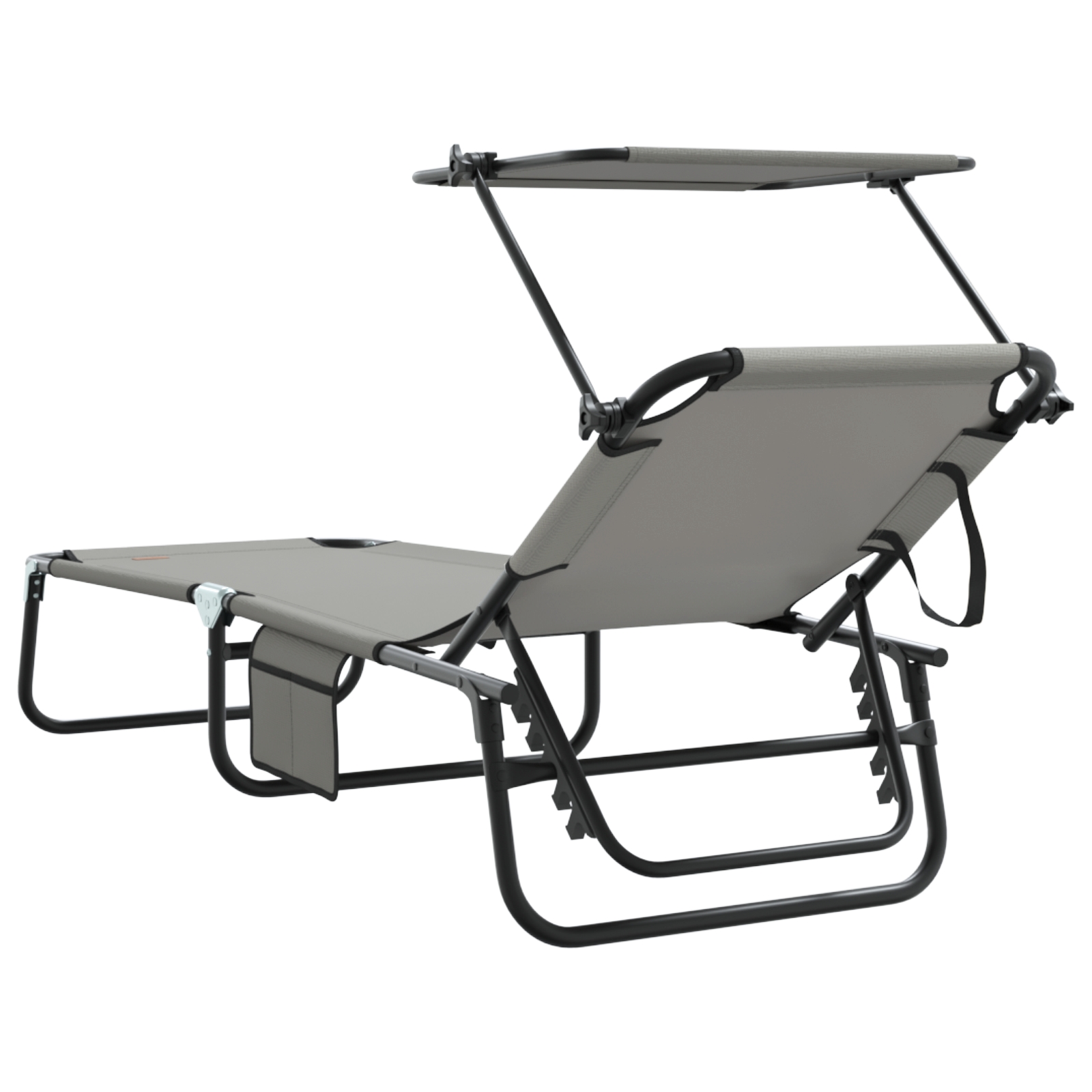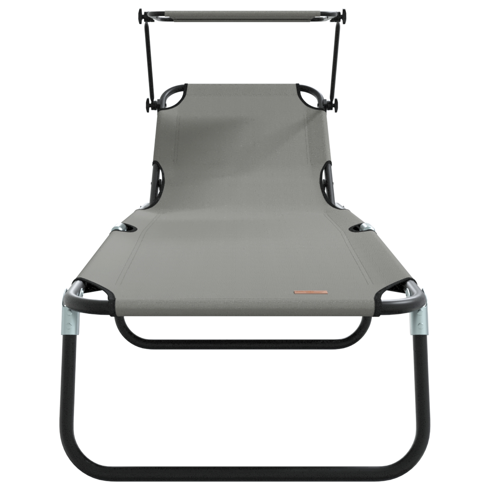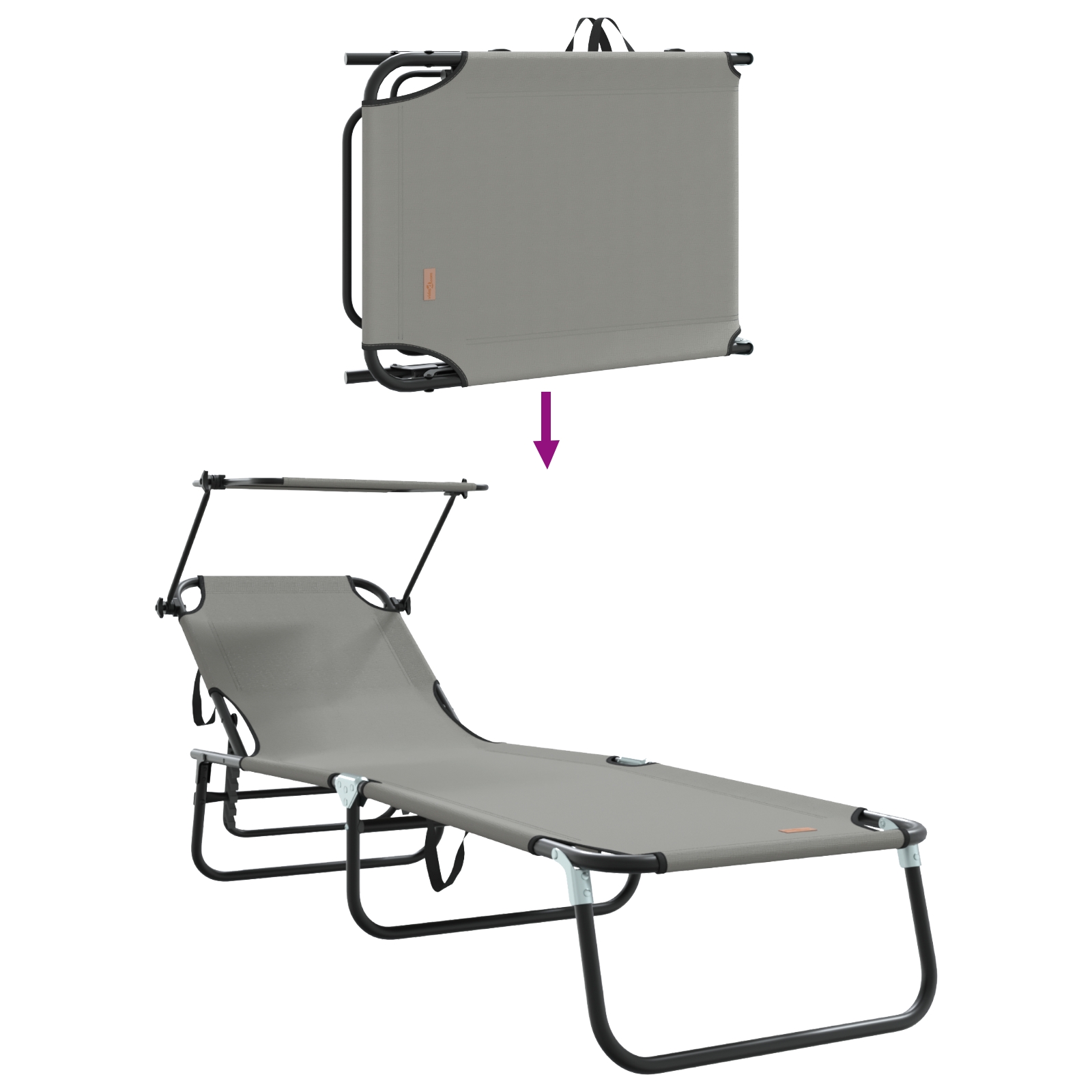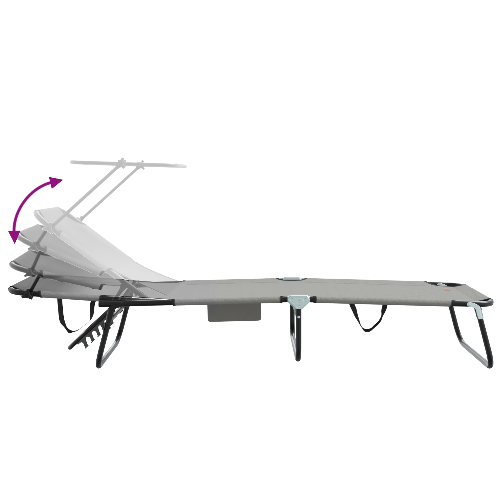 vidaXL Skladacie lehátka 2 ks s markízou Sivé 600D Oxfordská tkanina