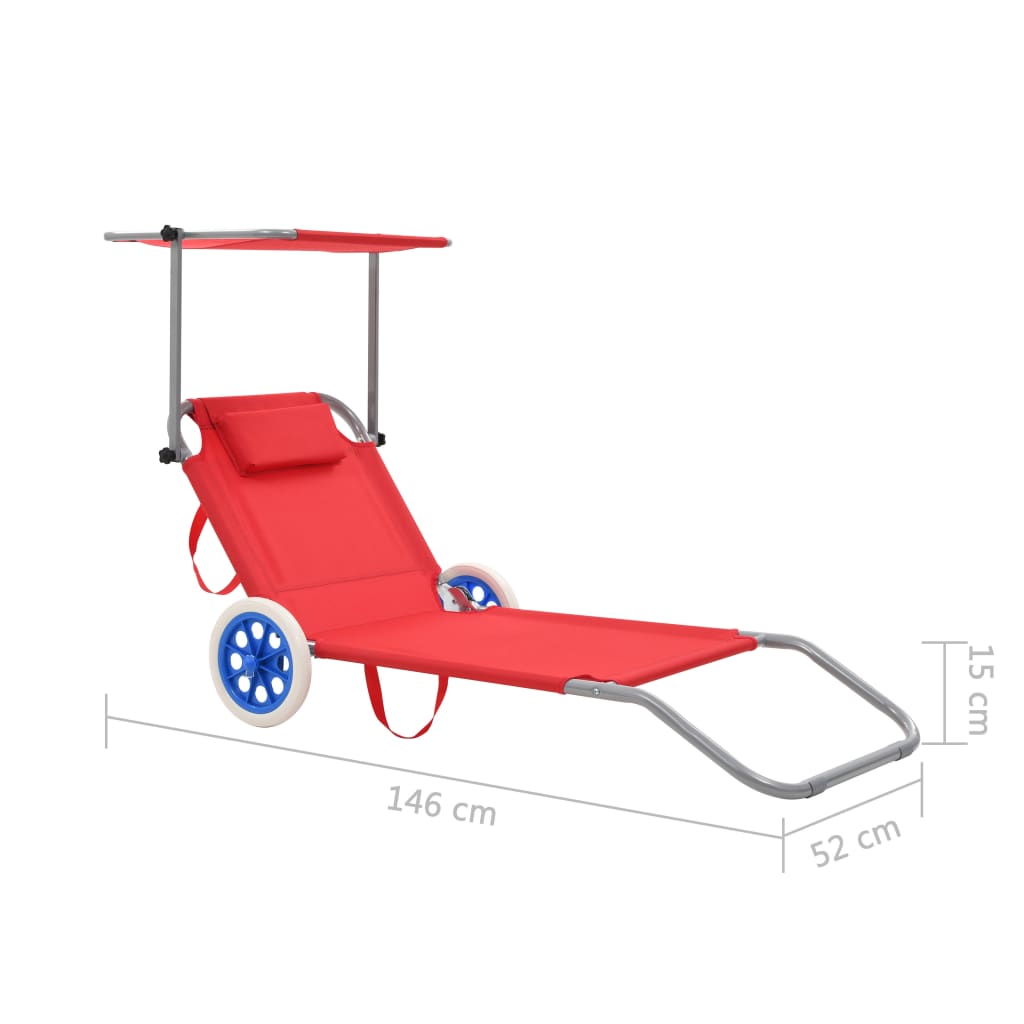 vidaXL Skladacie ležadlo so strieškou a kolieskami oceľ červené