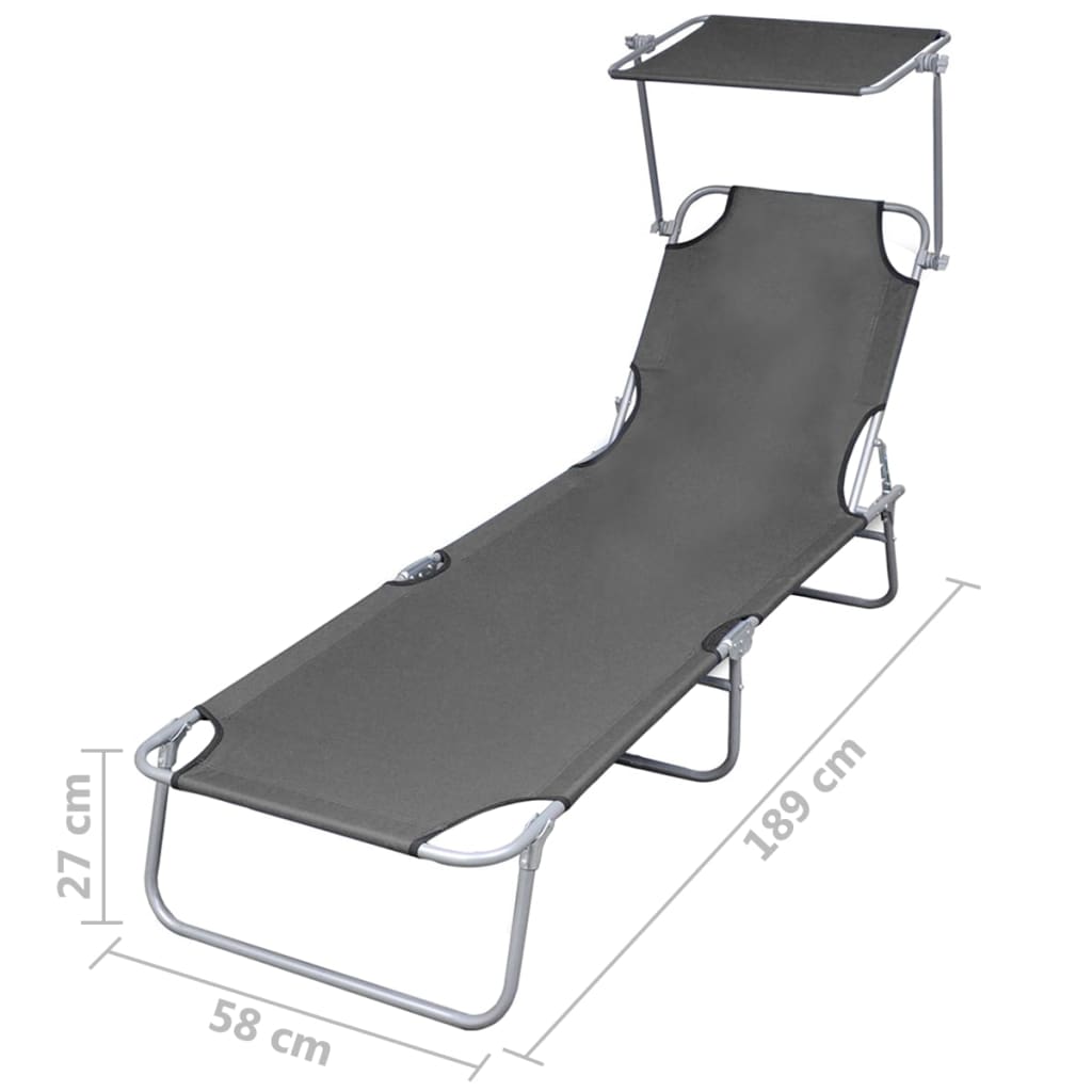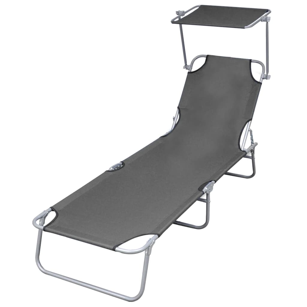 vidaXL Skladacie ležadlo so strieškou, oceľ, sivé