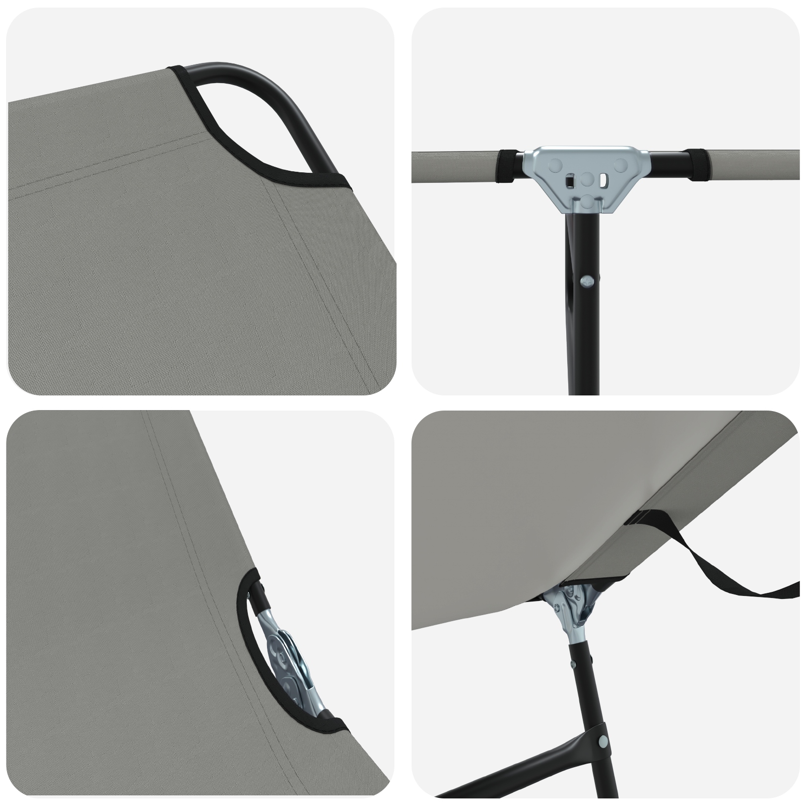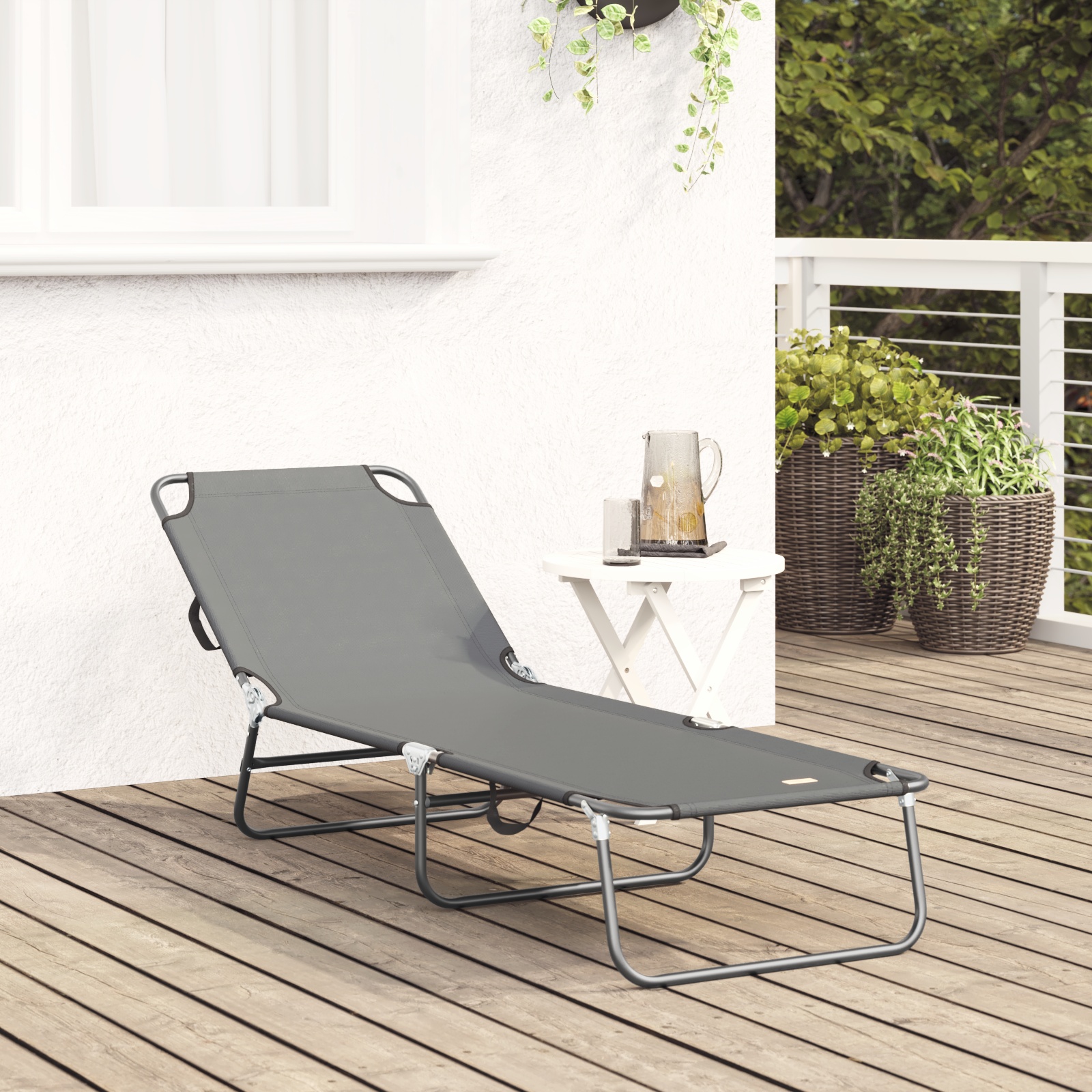 Toto sklápacie slnečné ležadlo je o tom, aby si si užil skvelý zážitok pri ležaní. Je ideálne na relaxovanie na balkóne alebo opaľovanie vonku. Moderná sivá farba a dizajn obohatia tvoj priestor a zabezpečia komfort počas všetkých vonkajších aktivít.