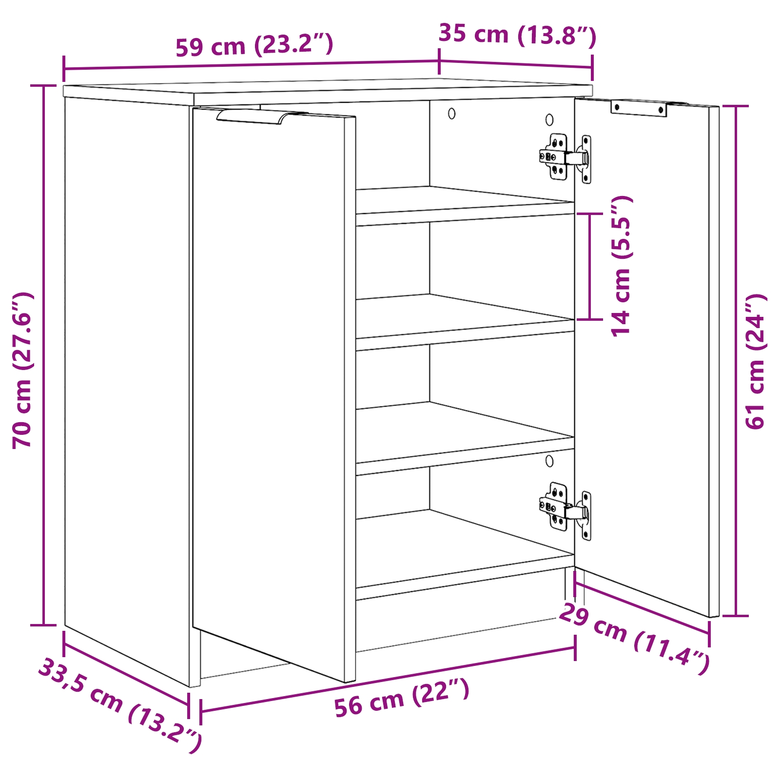 vidaXL Skriňa na topánky čierny dub 59x35x70 cm z dreveného materiálu