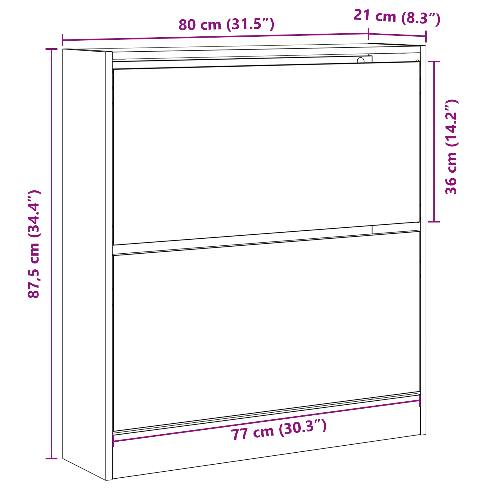 • Meria 80 x 21 x 87.5 cm, je kompaktný pre menšie miestnosti, ale stále dostatočne priestranný pre množstvo vecí.